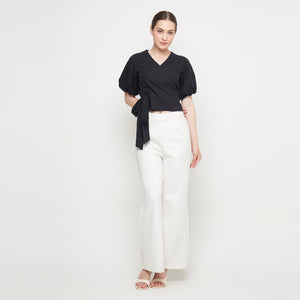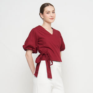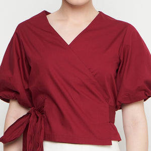 Amary Women's Top is a playful crop top with a wrapped design that lets you create your own perfect fit. It has two ties — one goes through a hidden hole and then ties with the other, giving you a customized look. The short balloon sleeves add a fun and delicate touch, making it a stylish choice for warm days or casual outings.