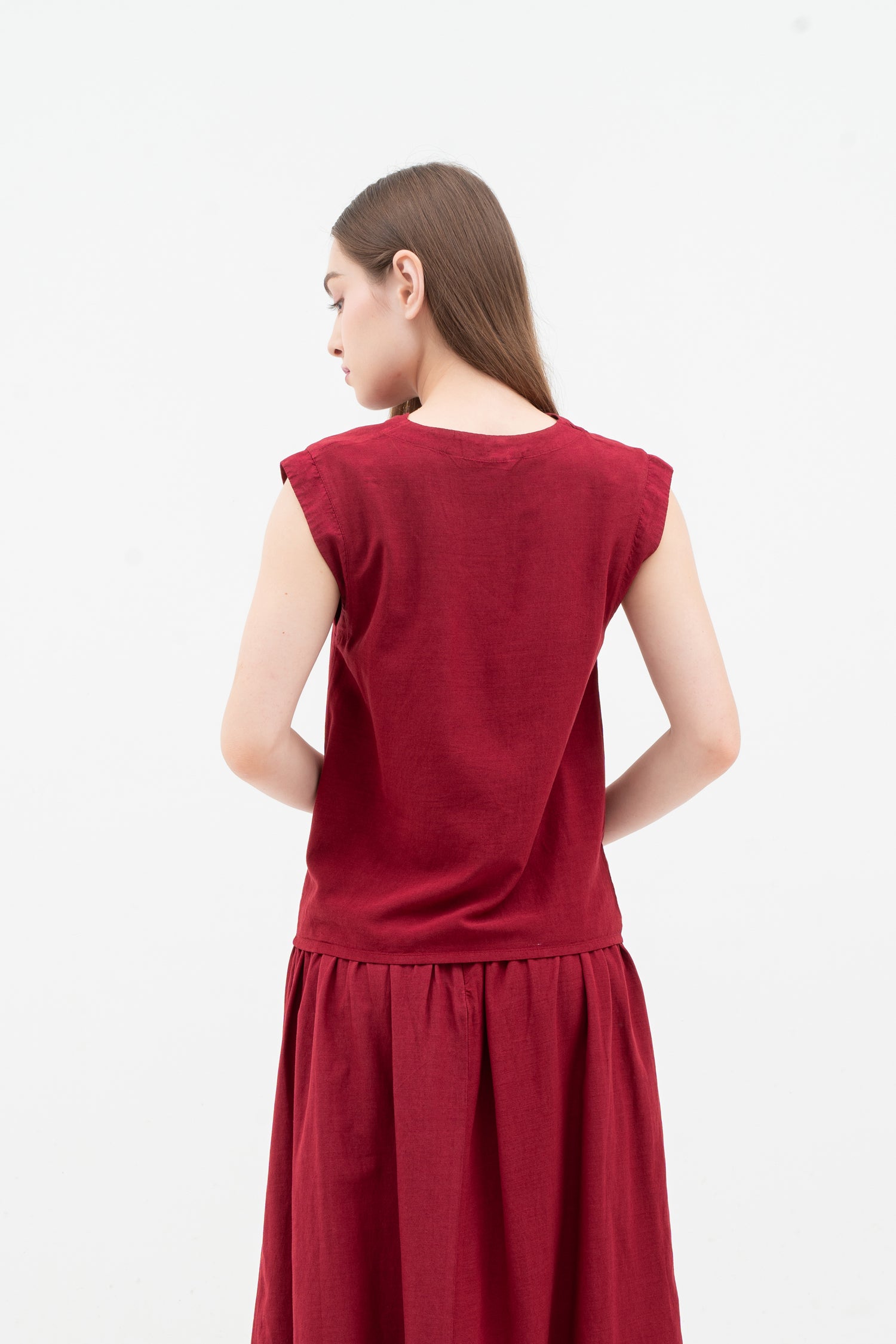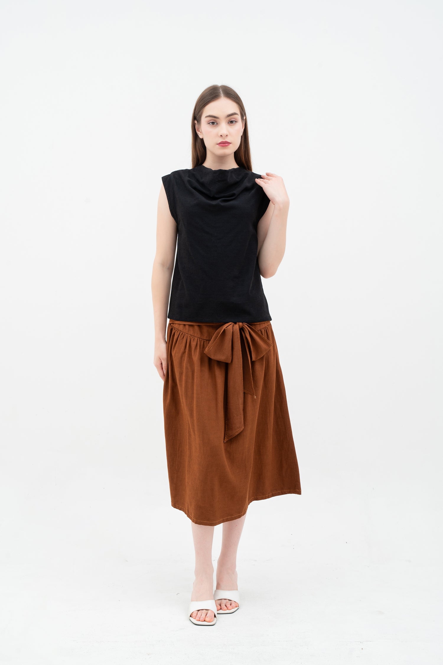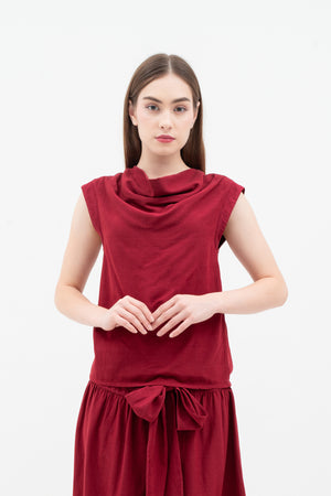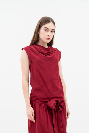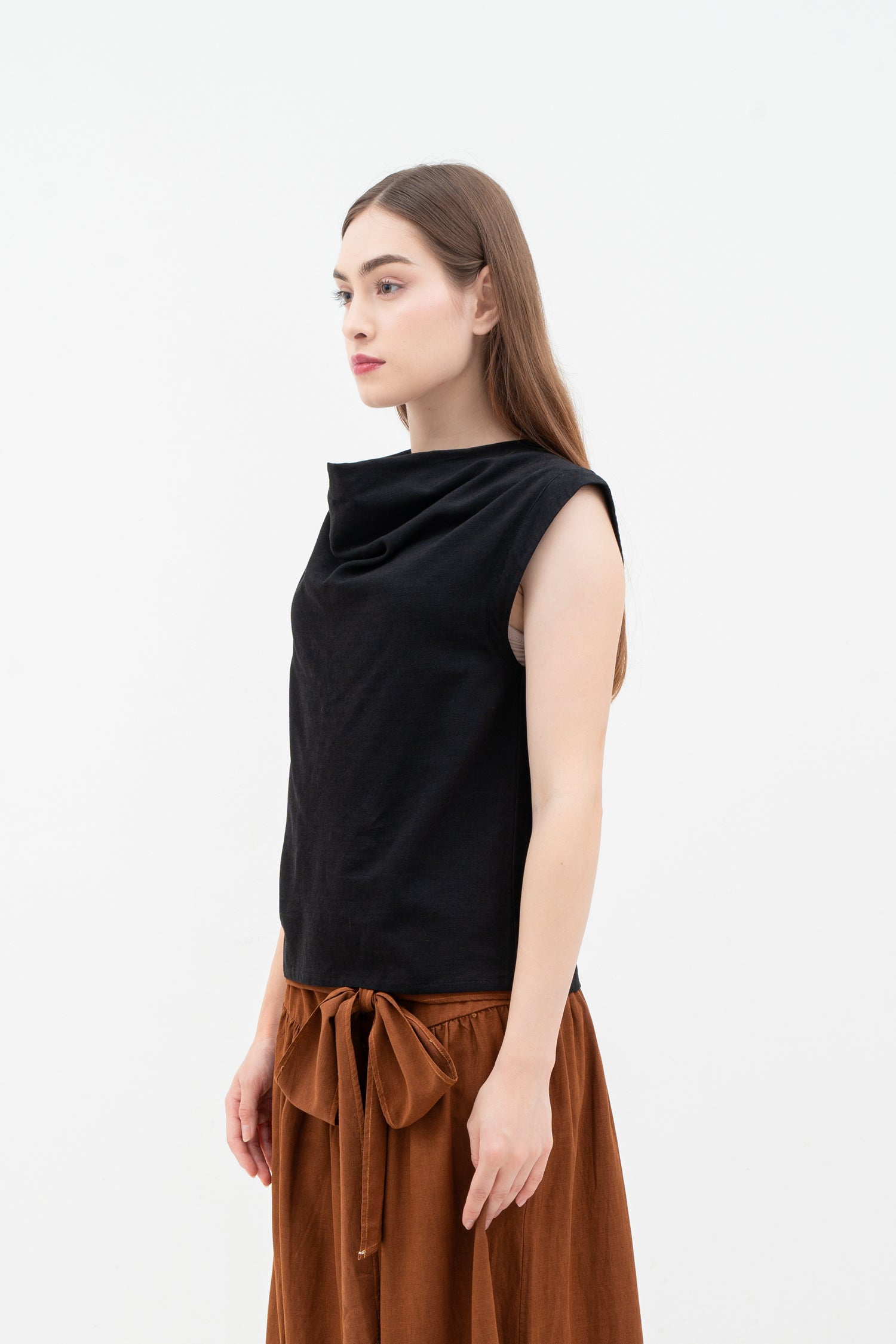 The Anne top is a breezy sleeveless piece with a softly draped cowl neckline that moves with you. Made from a lightweight linen blend, it feels fresh and effortlessly chic—perfect for a calm, natural look.
