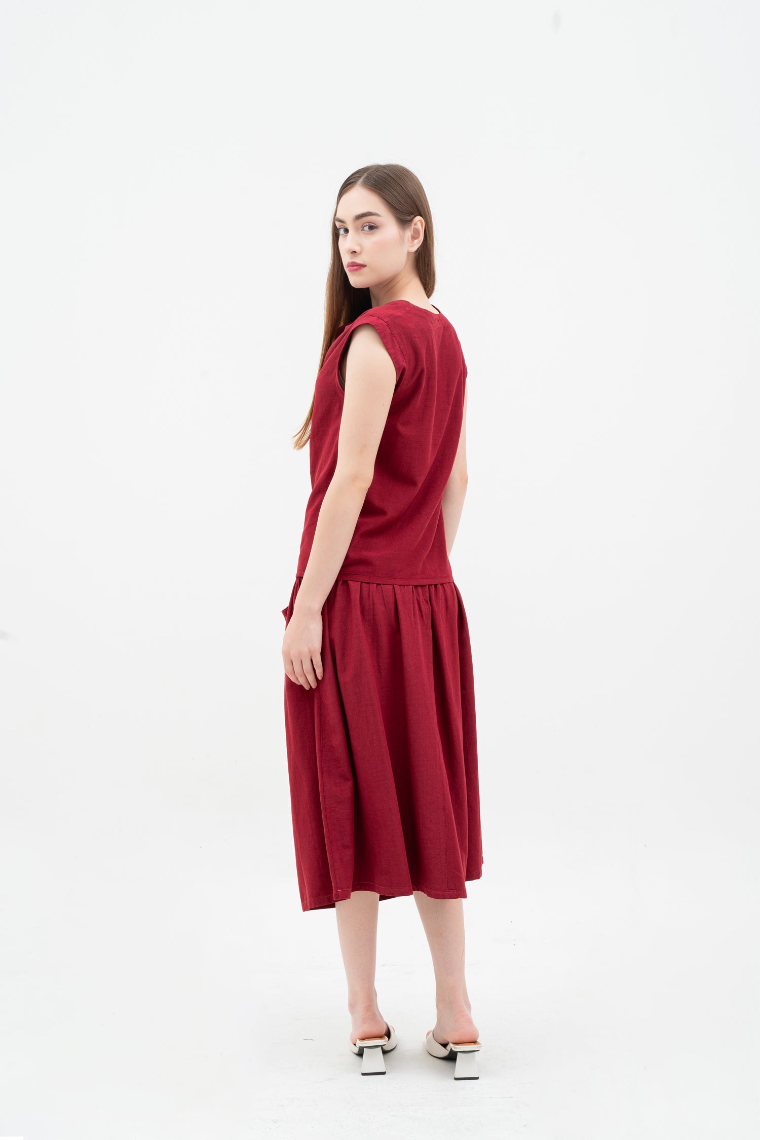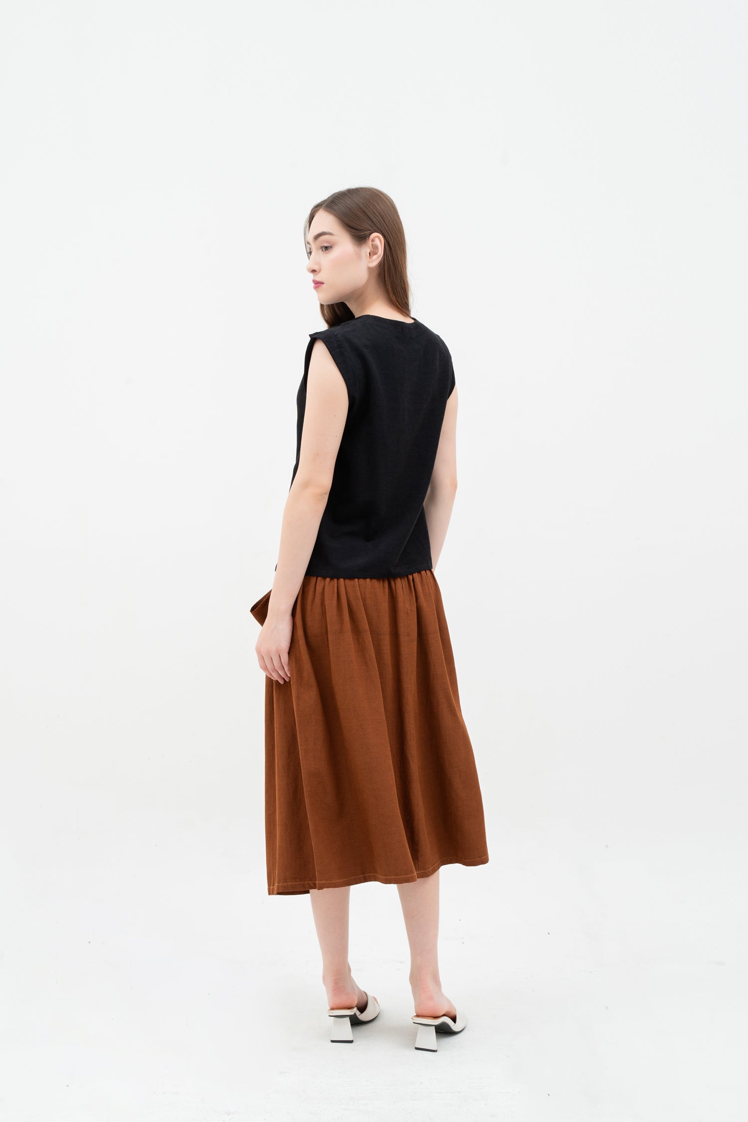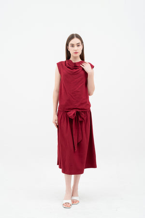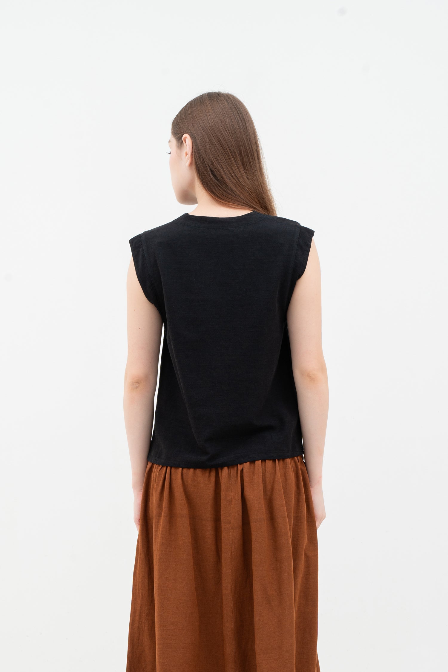 The Anne top is a breezy sleeveless piece with a softly draped cowl neckline that moves with you. Made from a lightweight linen blend, it feels fresh and effortlessly chic—perfect for a calm, natural look.