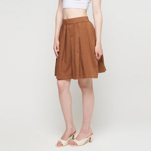 Belle Women’s Skirt is a pleated mini skirt crafted from structured cotton denim. The fitted waistband and belt loops give it a clean, polished look, while the pleats add a feminine touch. Designed for everyday wear, this piece transitions effortlessly from casual outings to more elevated occasions.