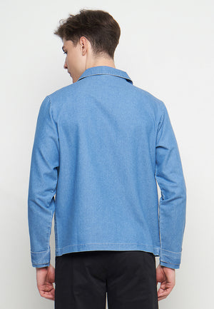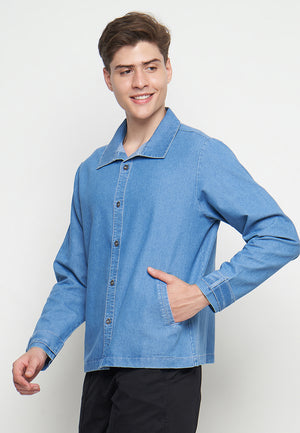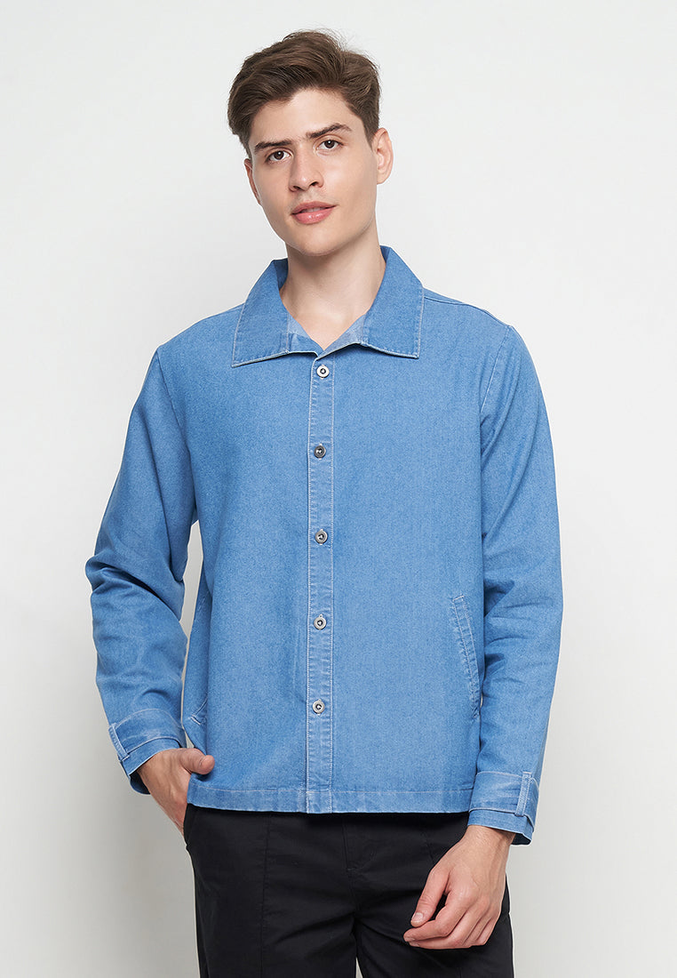Bill Men's Denim Outer is a regular-fit denim jacket with hidden front pockets and stylish fake cuffs with sleeve loops. A great layering piece for casual looks.