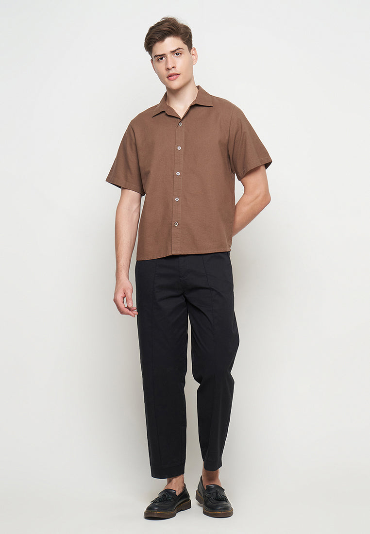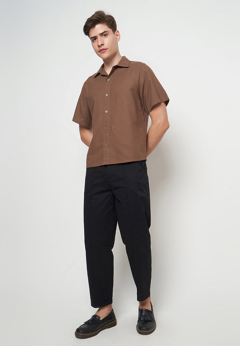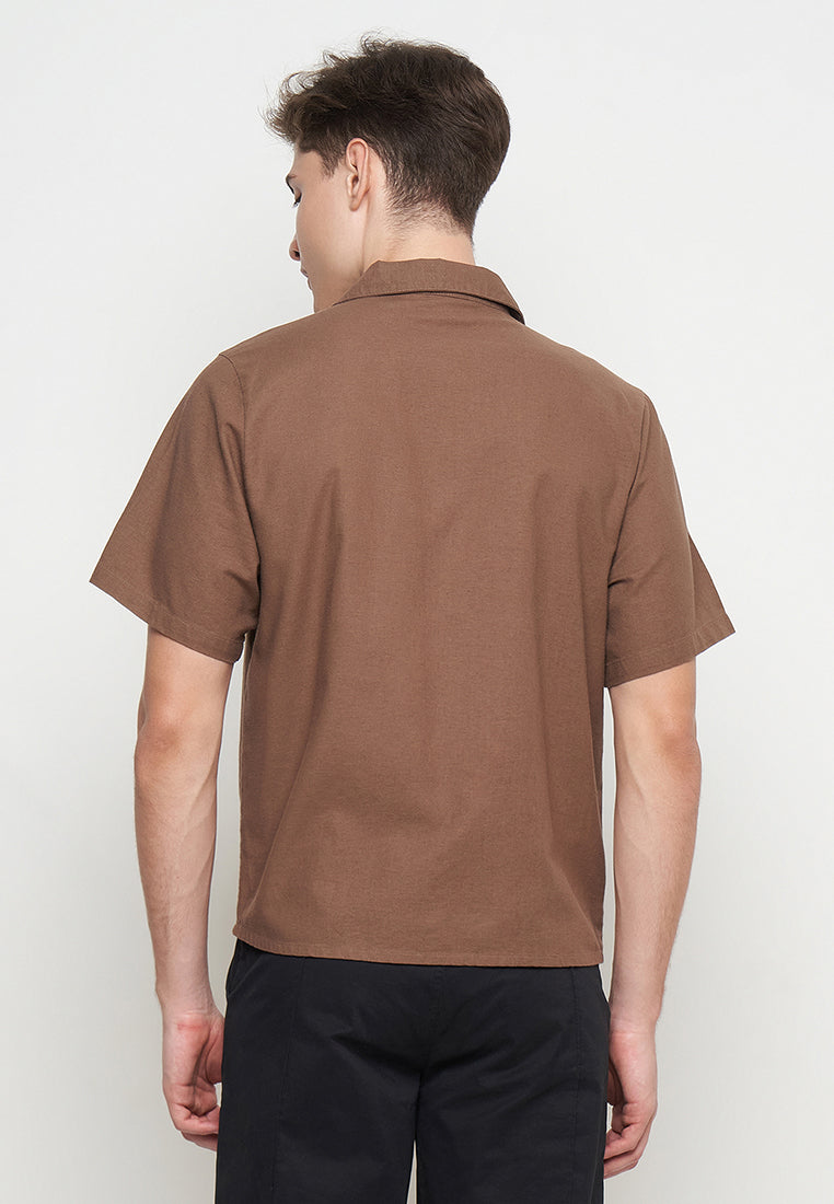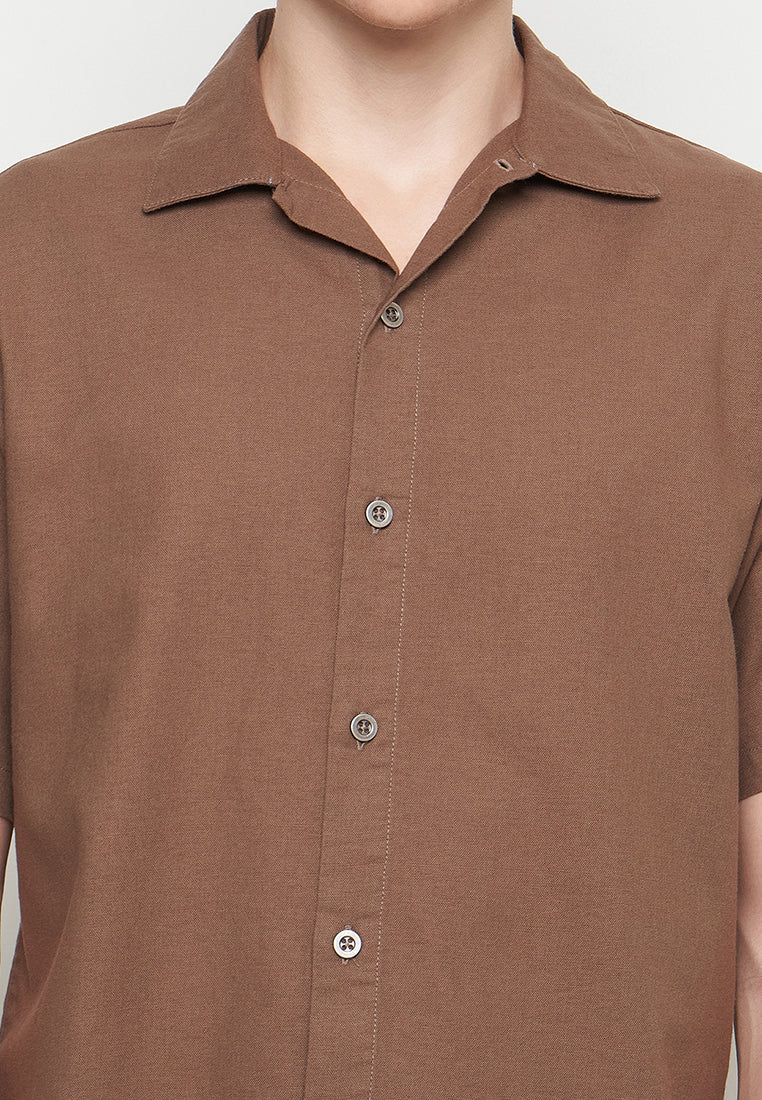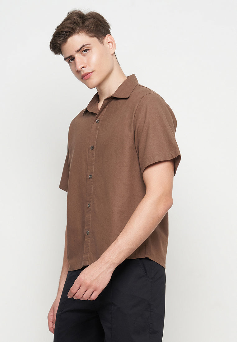 This regular fit basic shirt is made from soft rami fabric for breathable comfort. It features a stylish rolled collar, perfect for a casual yet polished look. Ideal for everyday wear.