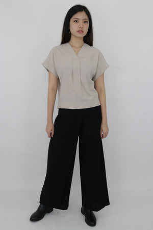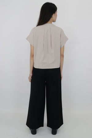 This Top is a versatile piece you can wear two ways: with a flattering V neckline in front, or reverse it for a chic high collar look. It has a regular fit and features box pleats on both sides for a subtle, stylish touch. Easy to dress up or down, this top gives you options for any occasion.