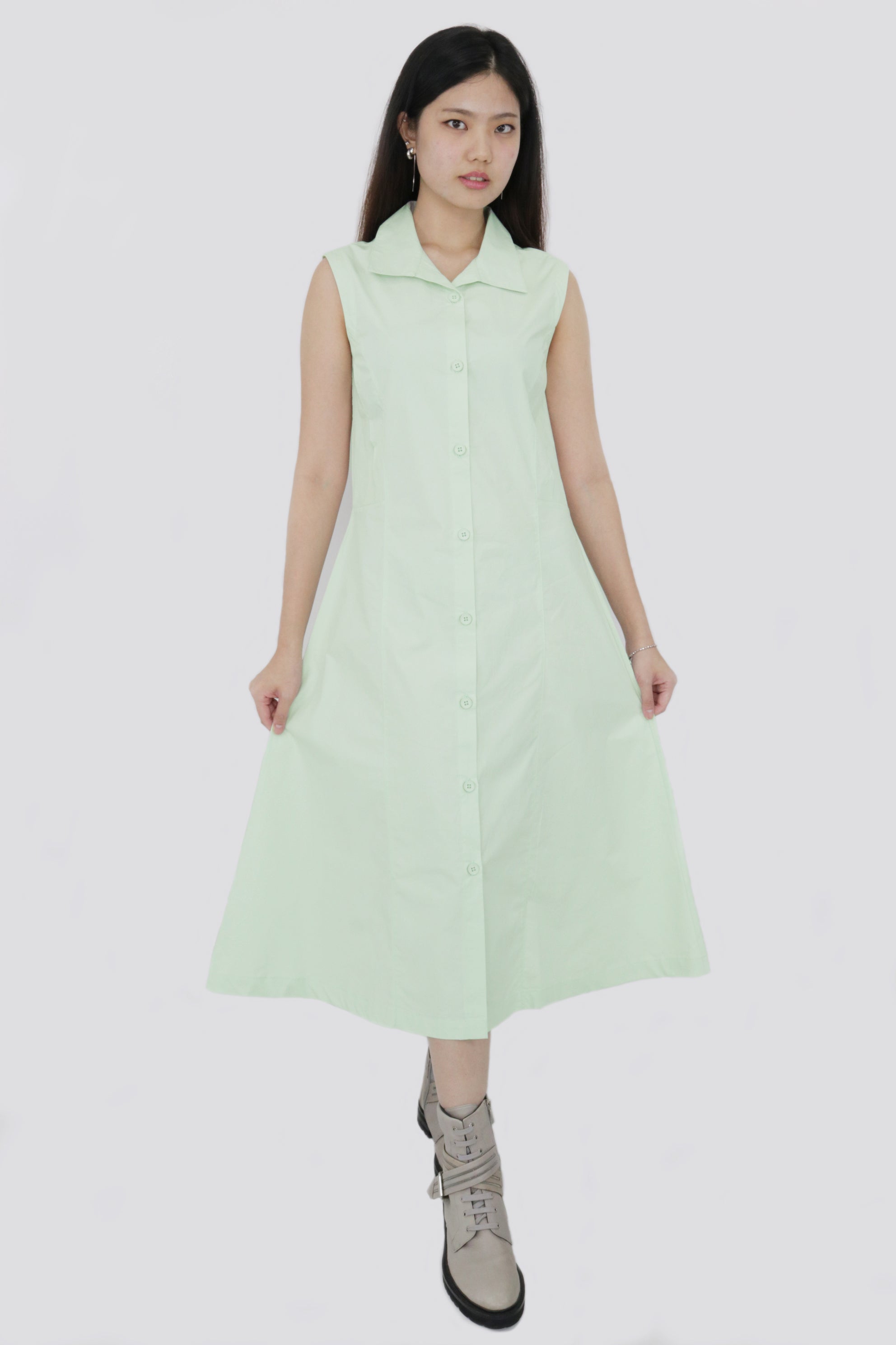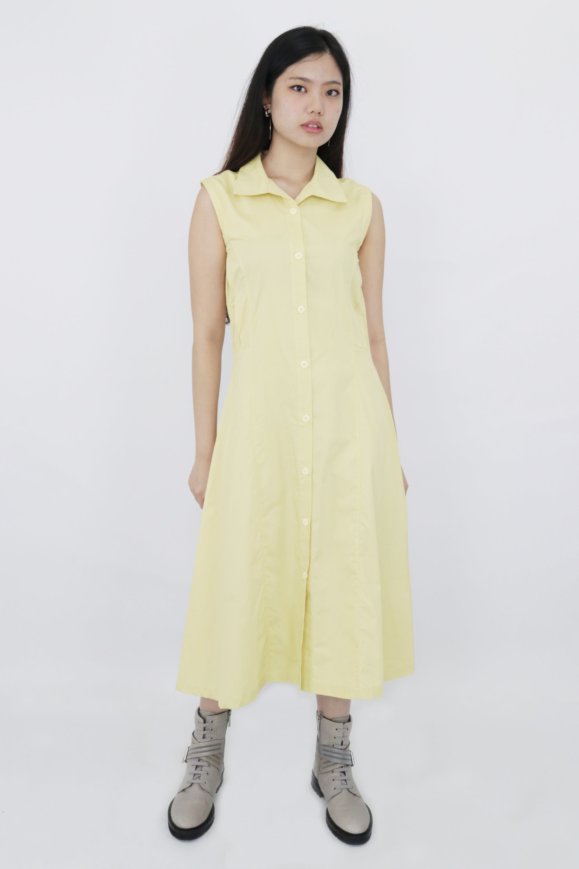 Features: Oversized Long Dress, Pleats, Button, Sleeveless