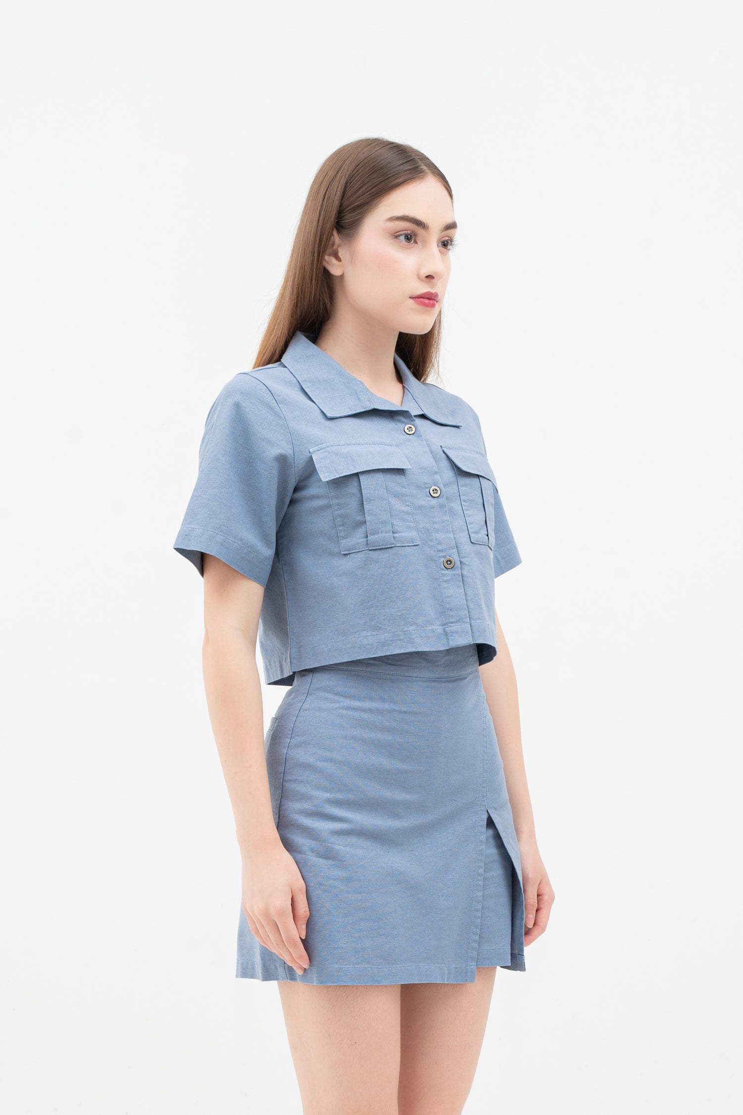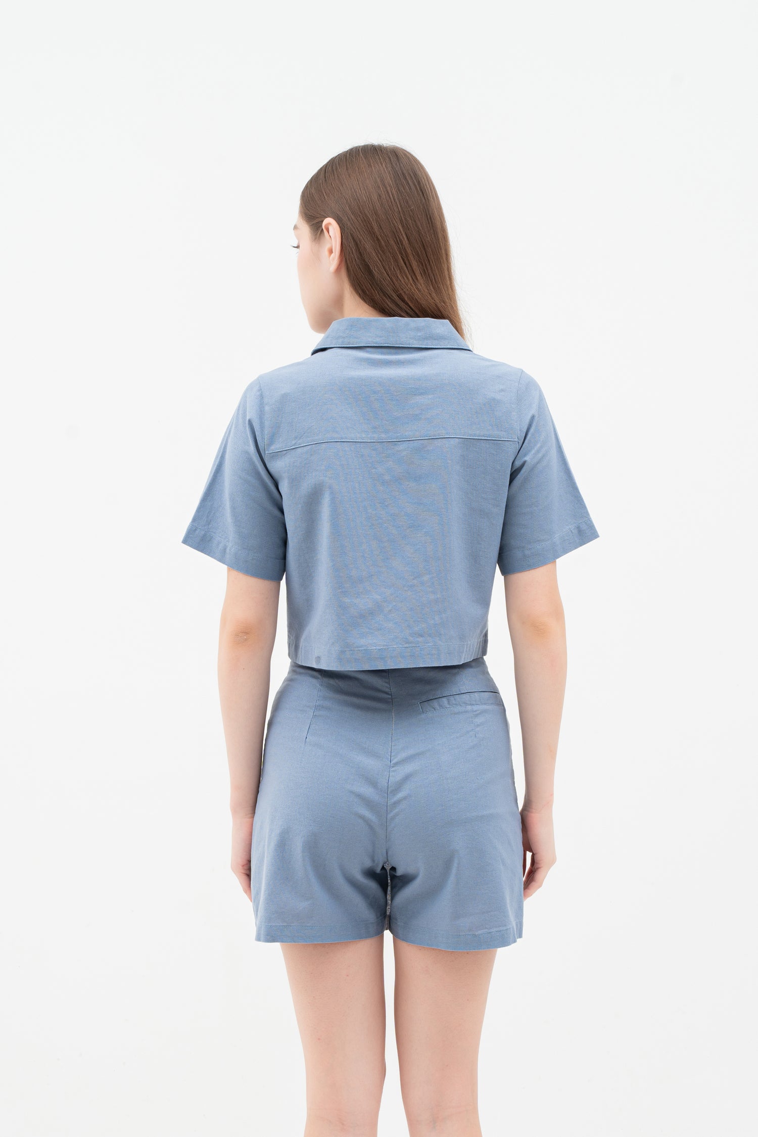 The Cove women's cropped shirt is made from soft, breathable cotton rami that feels light and comfy all day. Its shorter length adds a fresh, trendy touch, while the two front pockets bring a simple, cool detail. With a relaxed rolled collar and easy button-up front, this shirt is perfect for a casual, stylish look that’s easy to wear anytime.