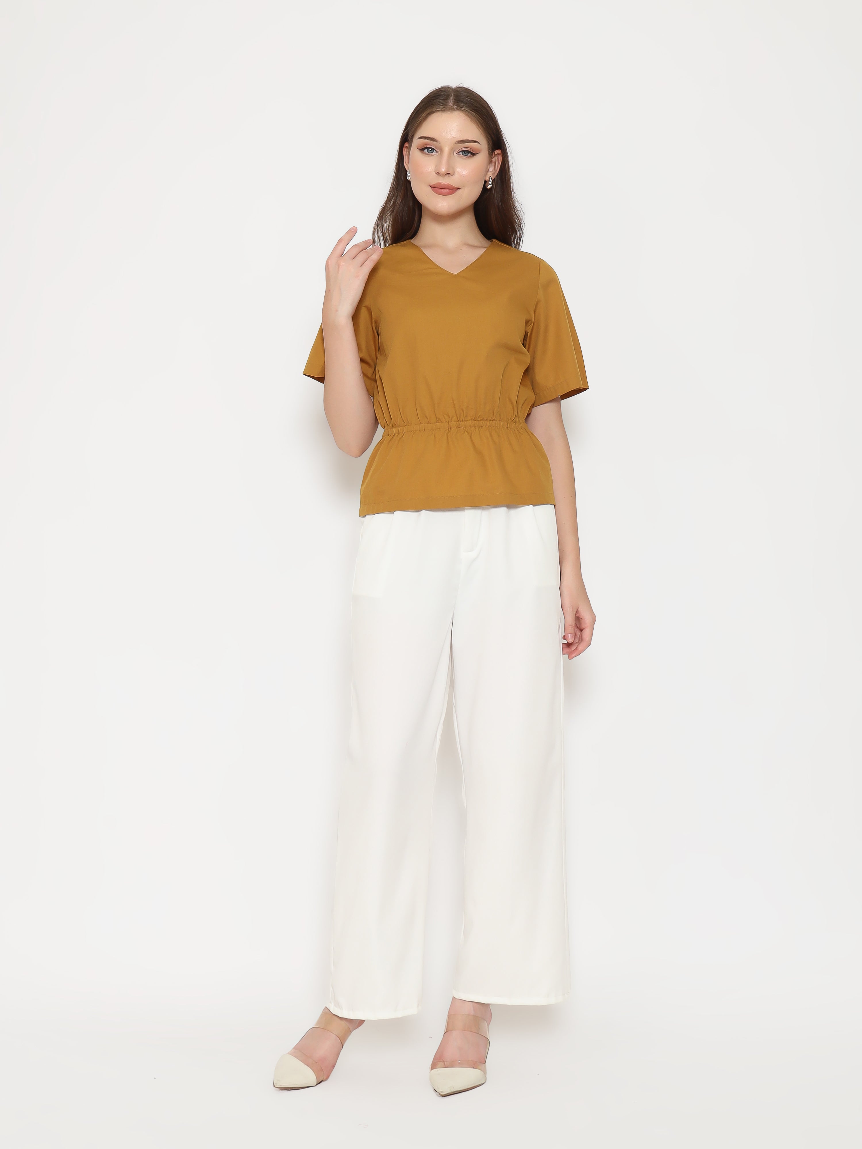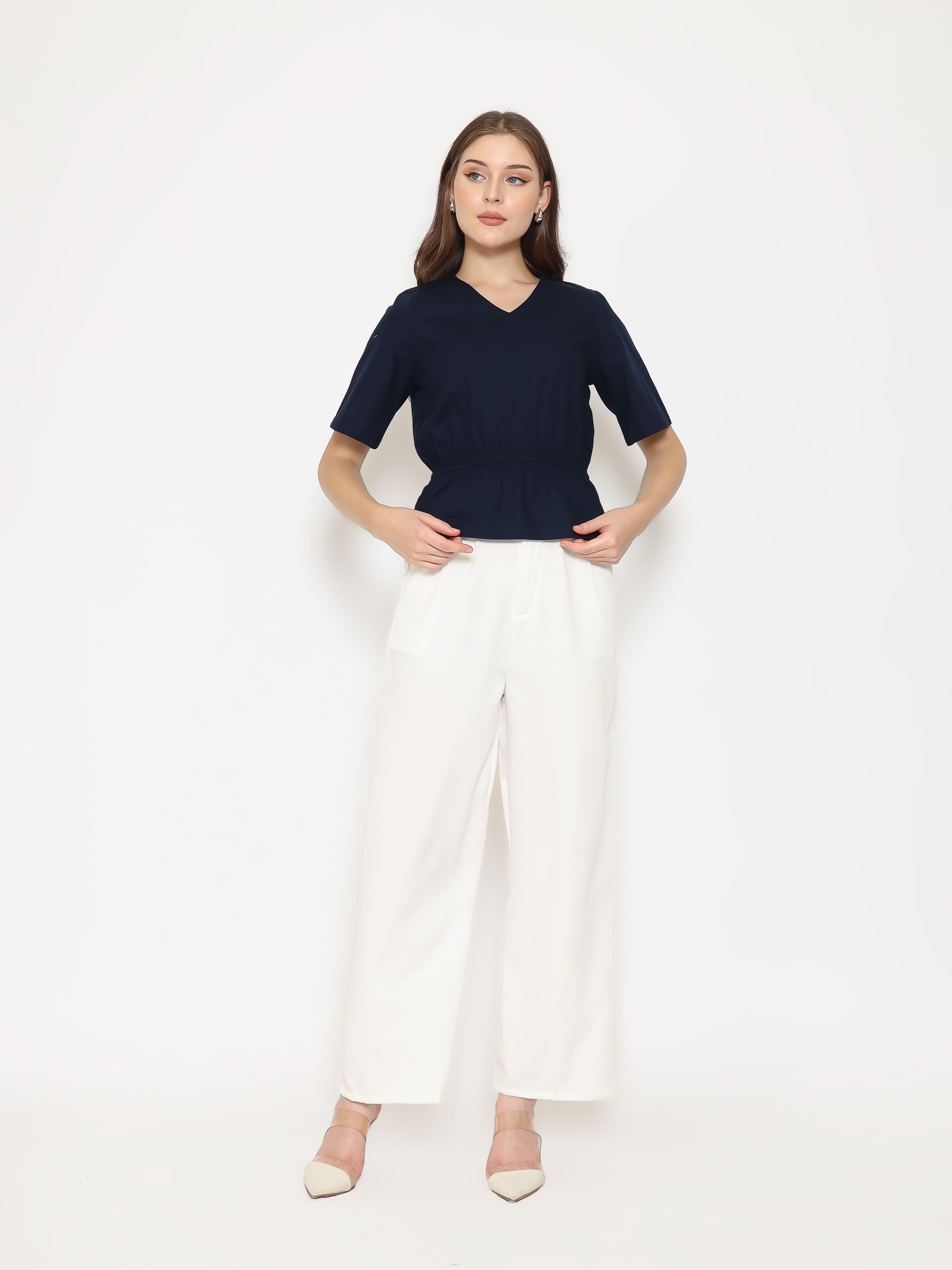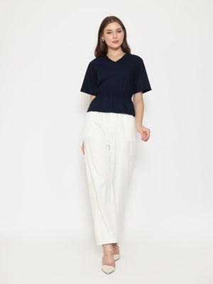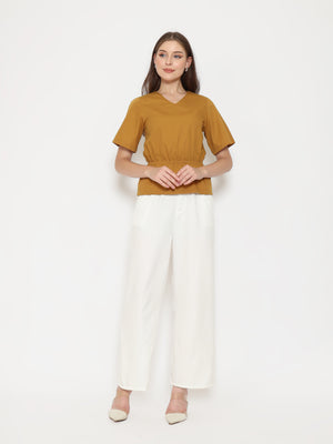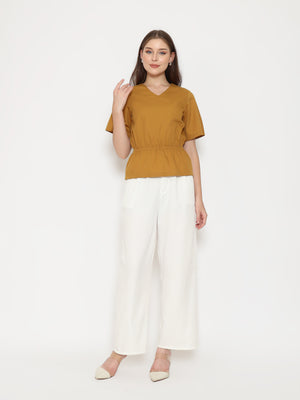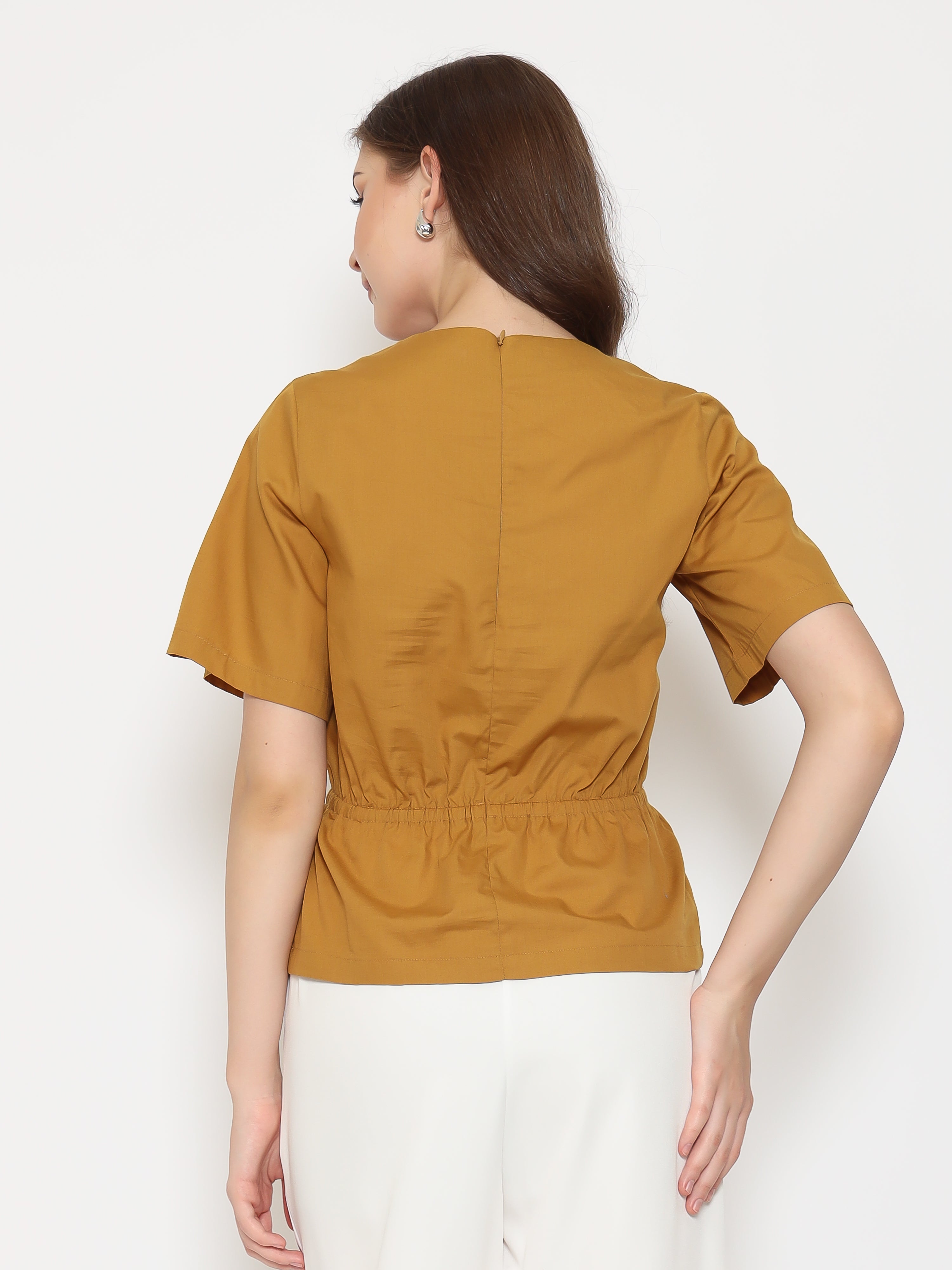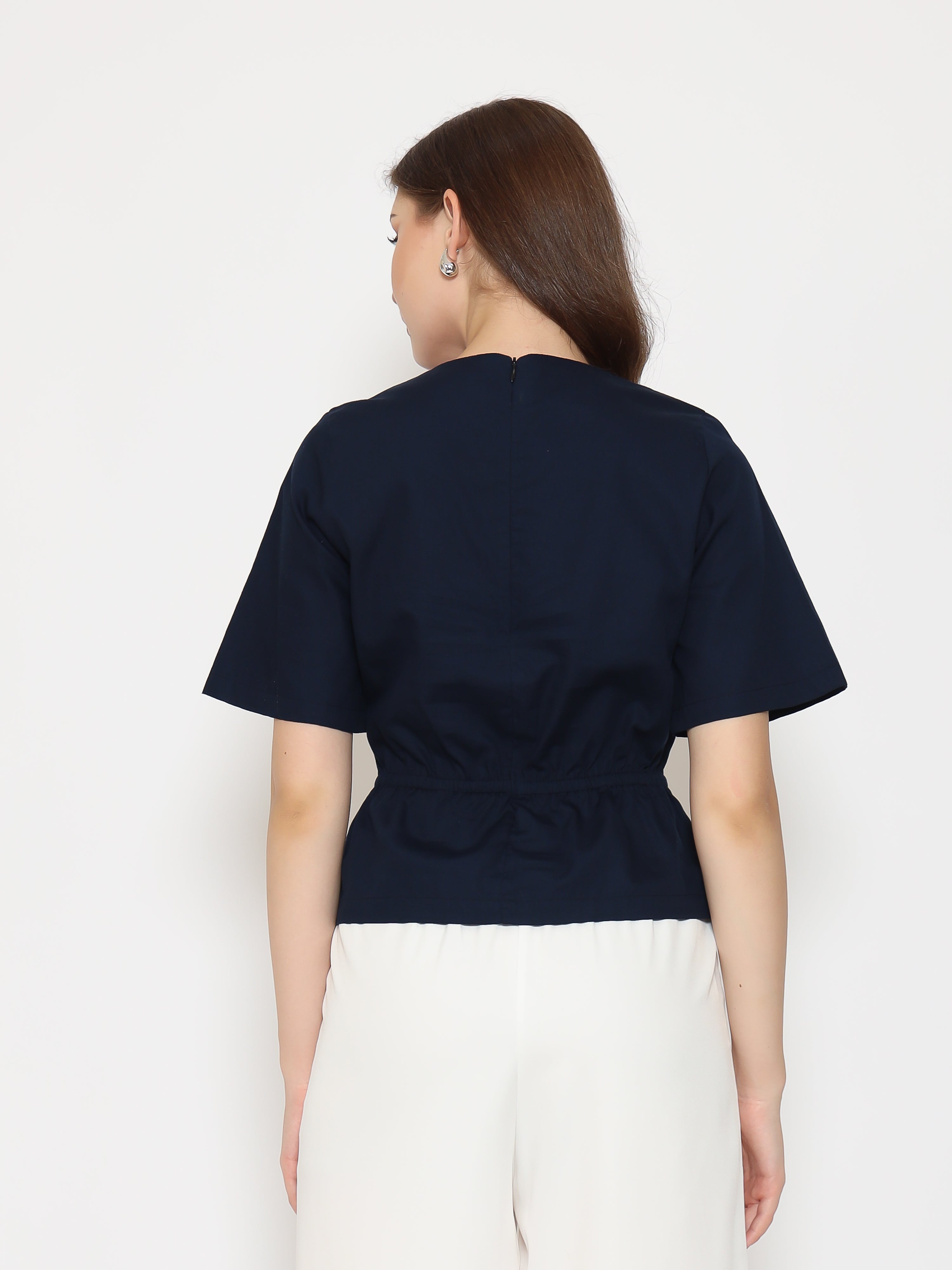 A flattering everyday top with refined details. The Harlow Womens Gathered Top features a V-neckline and gathered waistband that creates a soft, feminine silhouette. Made from crisp cotton poplin for a clean and comfortable fit.