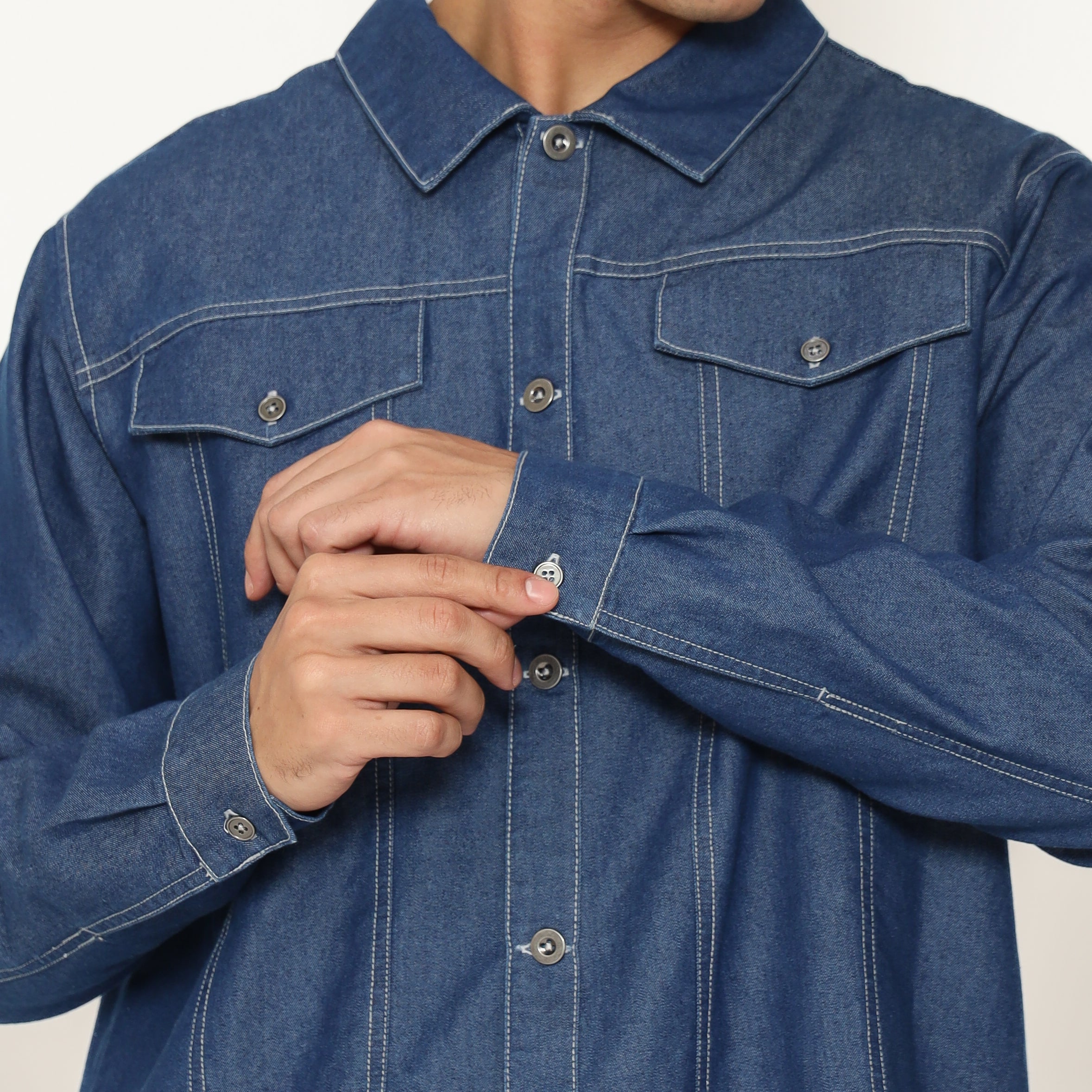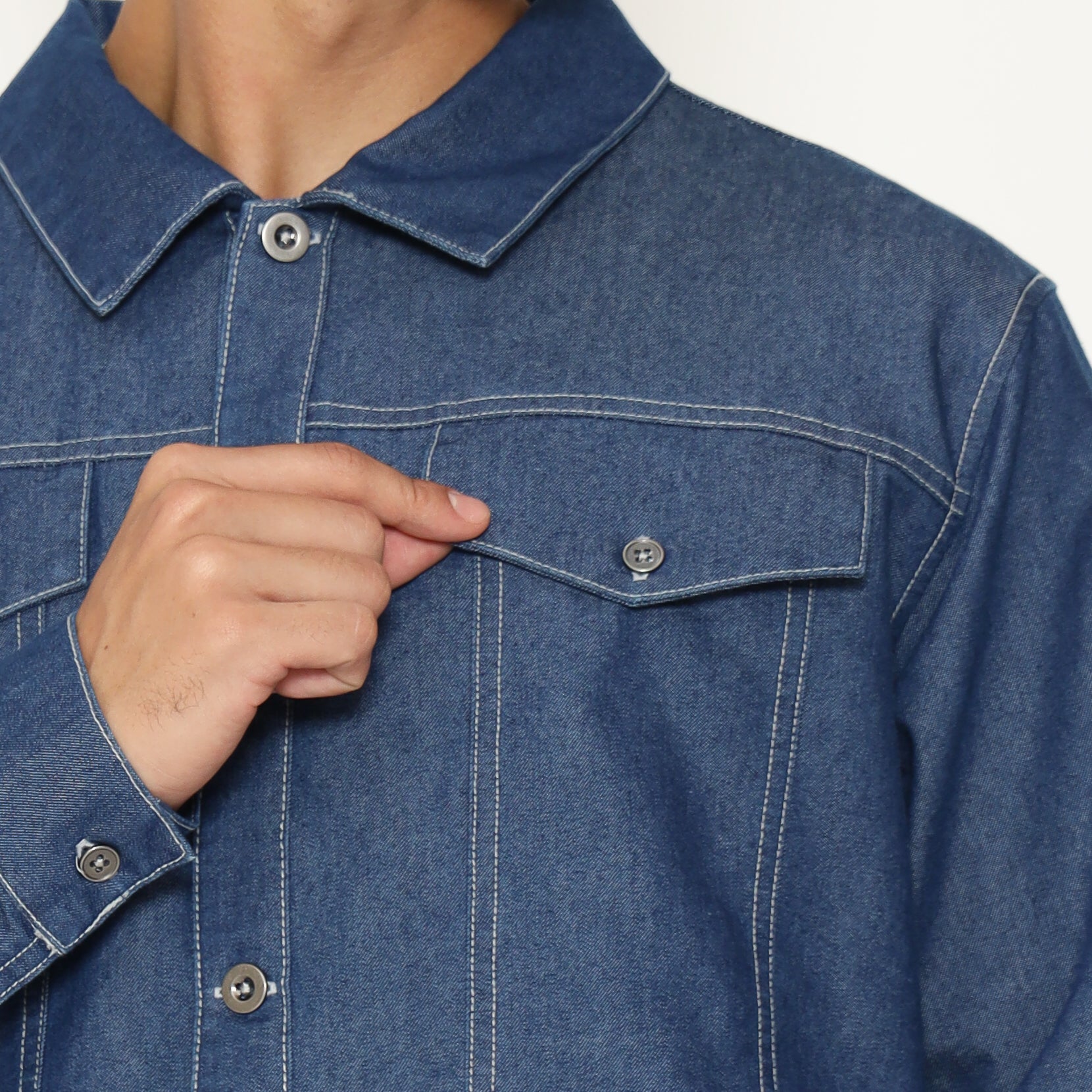 Isa Men's Jacket is a relaxed, oversized denim jacket that's perfect for casual wear. It has a comfy rolled collar, long sleeves, and buttons down the front for easy wear. The hidden pocket is great for keeping your essentials safe without ruining the clean look. It's a cool, simple jacket you can wear anytime.