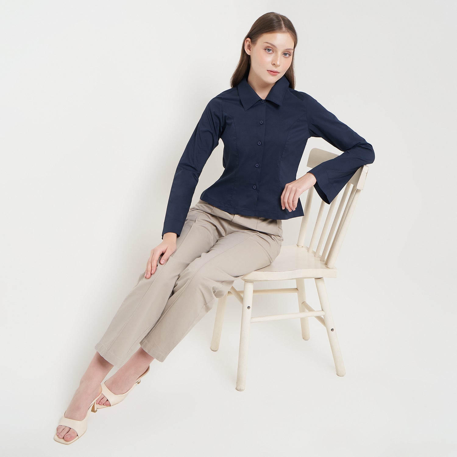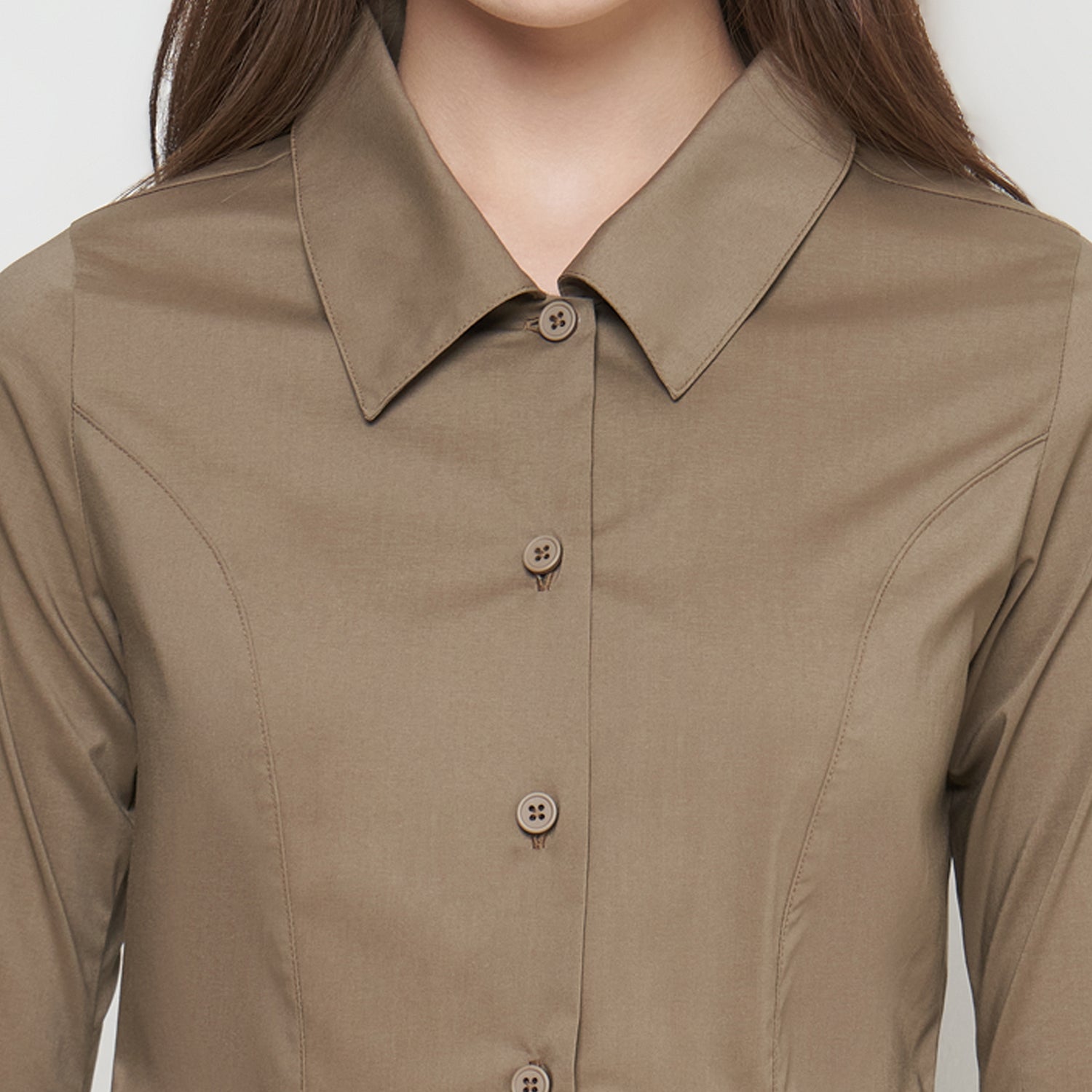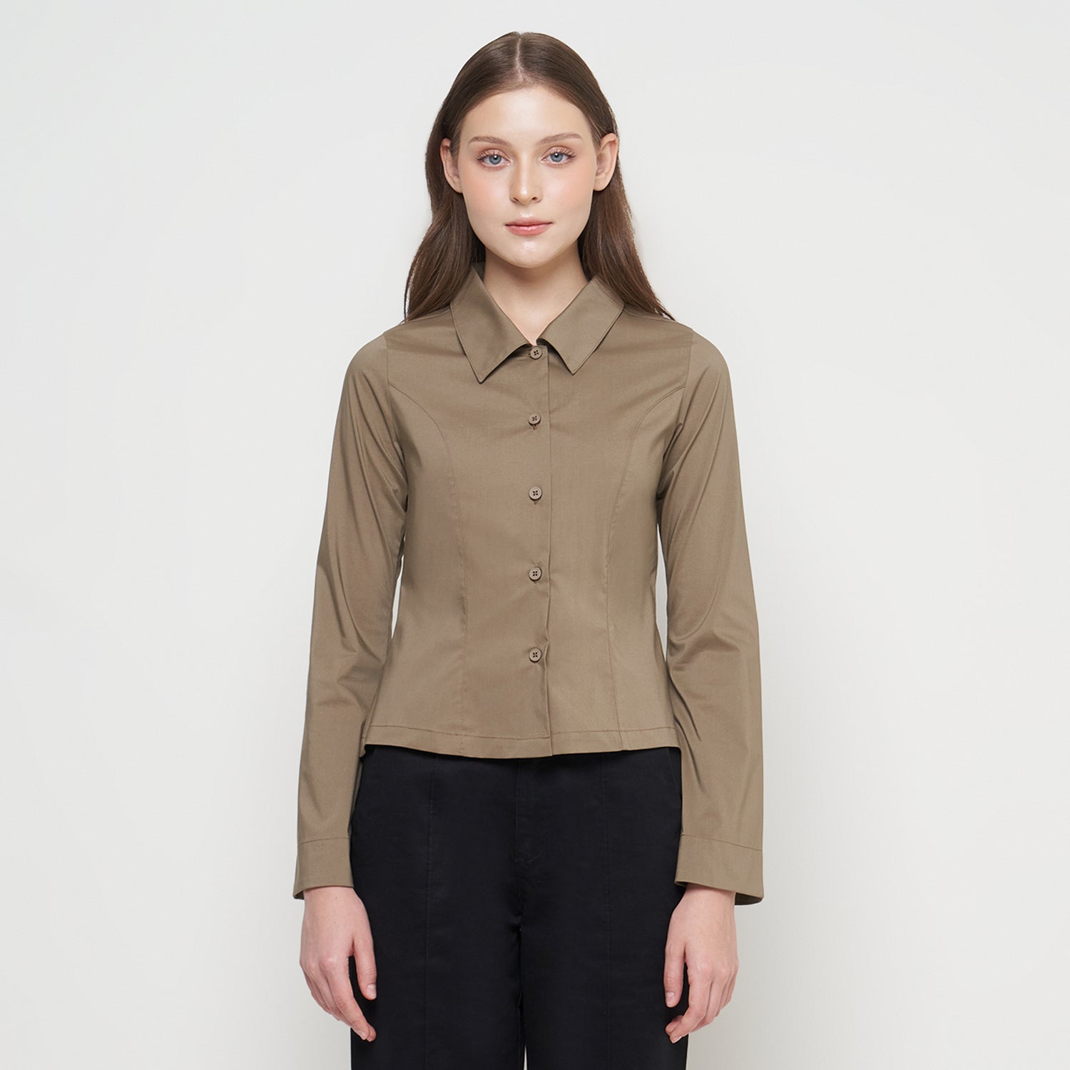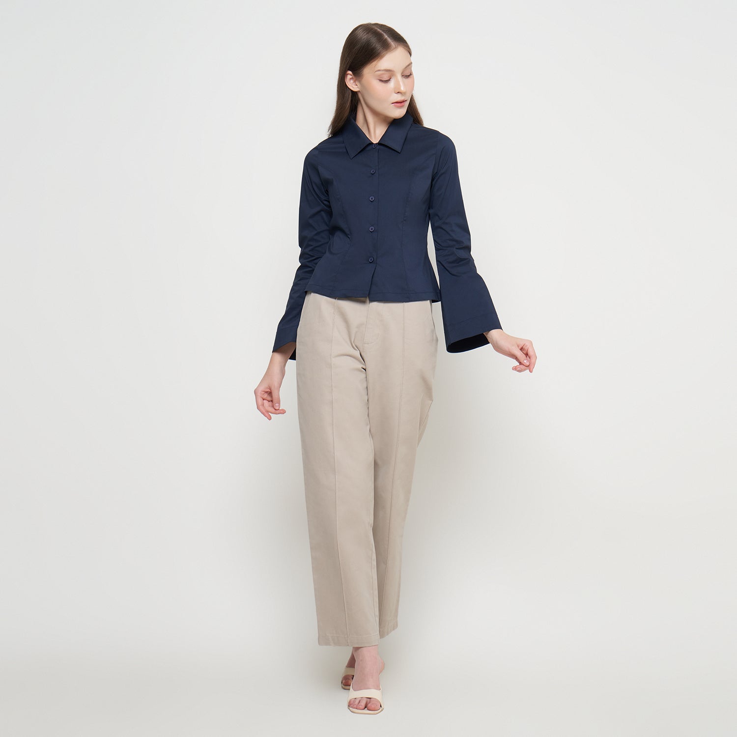 Features: Body-Fit Shirt, Rolled Collar, Flared Sleeves, Button