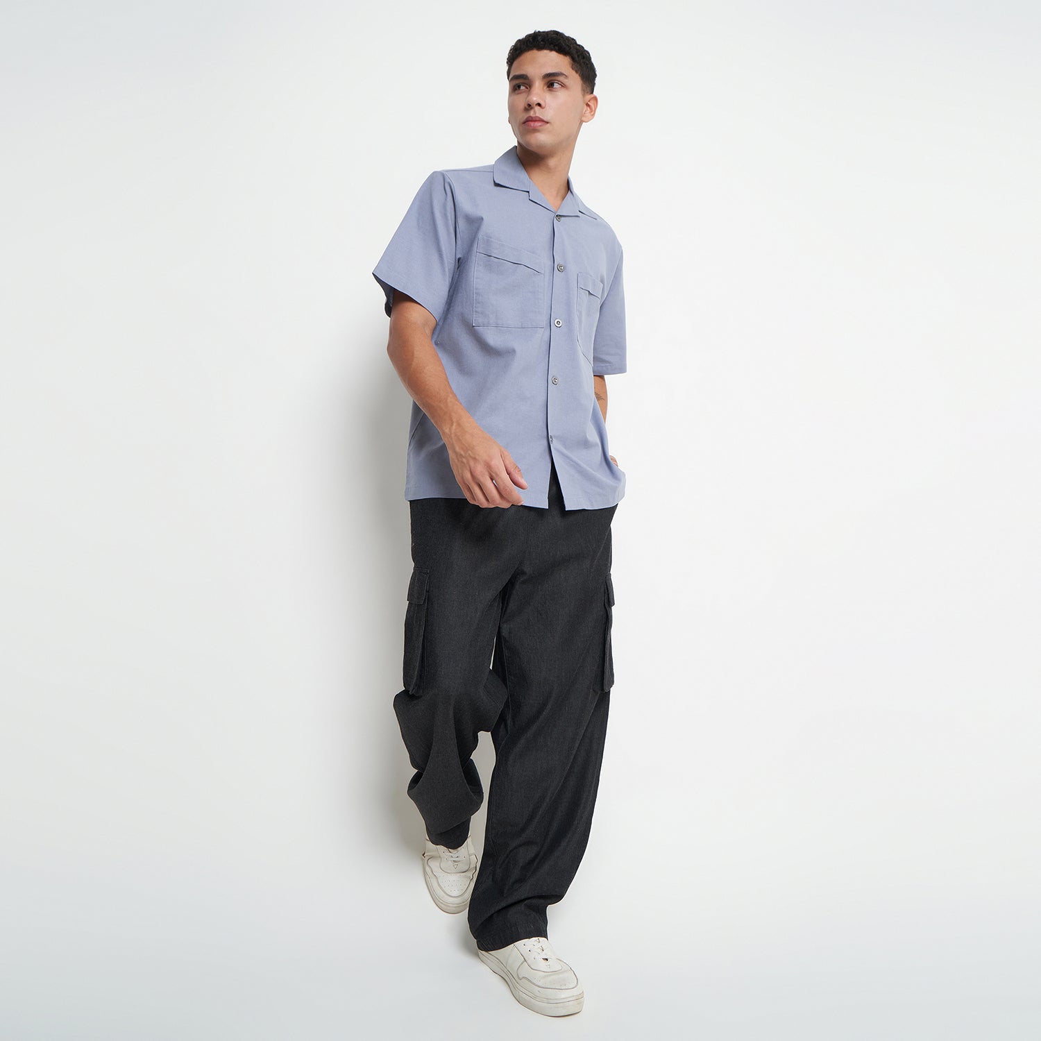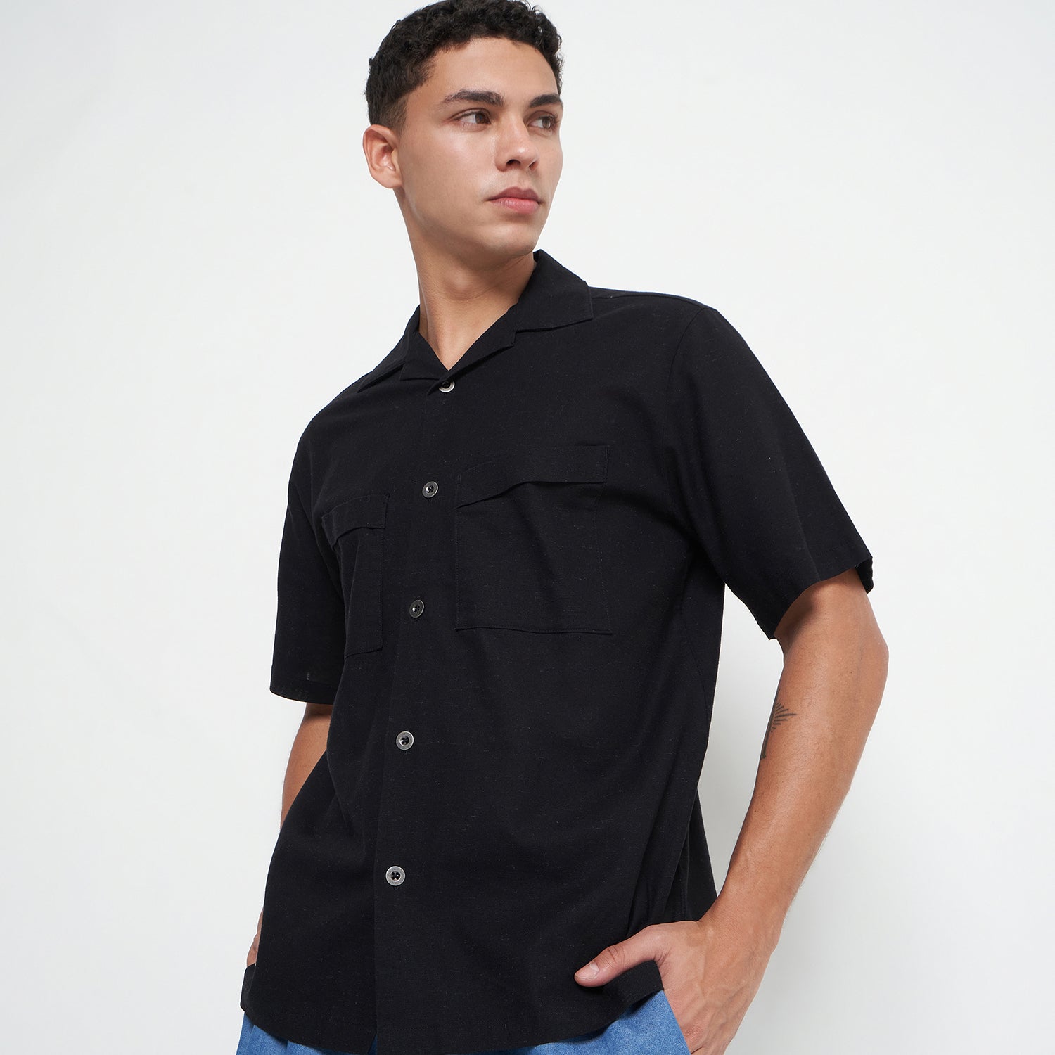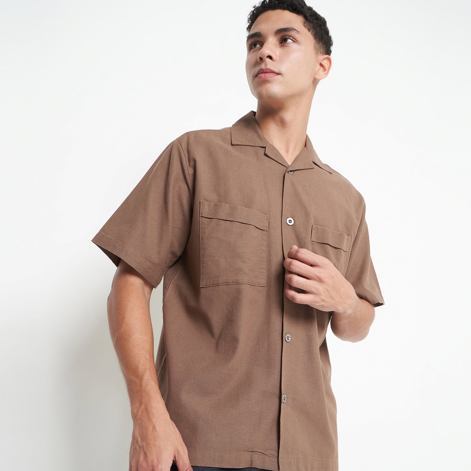 Features: Regular Fit Shirt, Lapel and Collar, Button, Patch Pockets