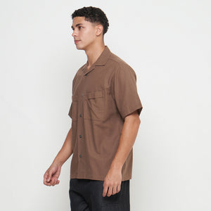 The Levi men’s shirt is a fresh take on a classic, made from breathable cotton rami for easy comfort. Its clean short sleeves and lapel collar carry simple elegance, while the asymmetric patch pocket adds a subtle, wing-eye inspired detail for a touch of unique style.