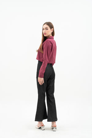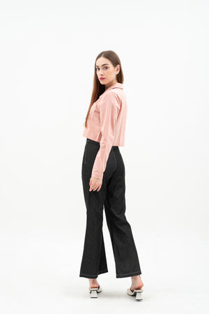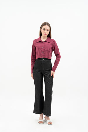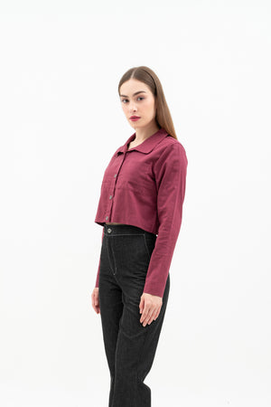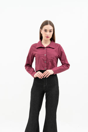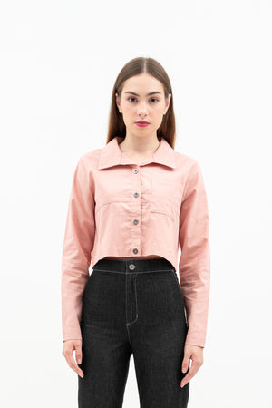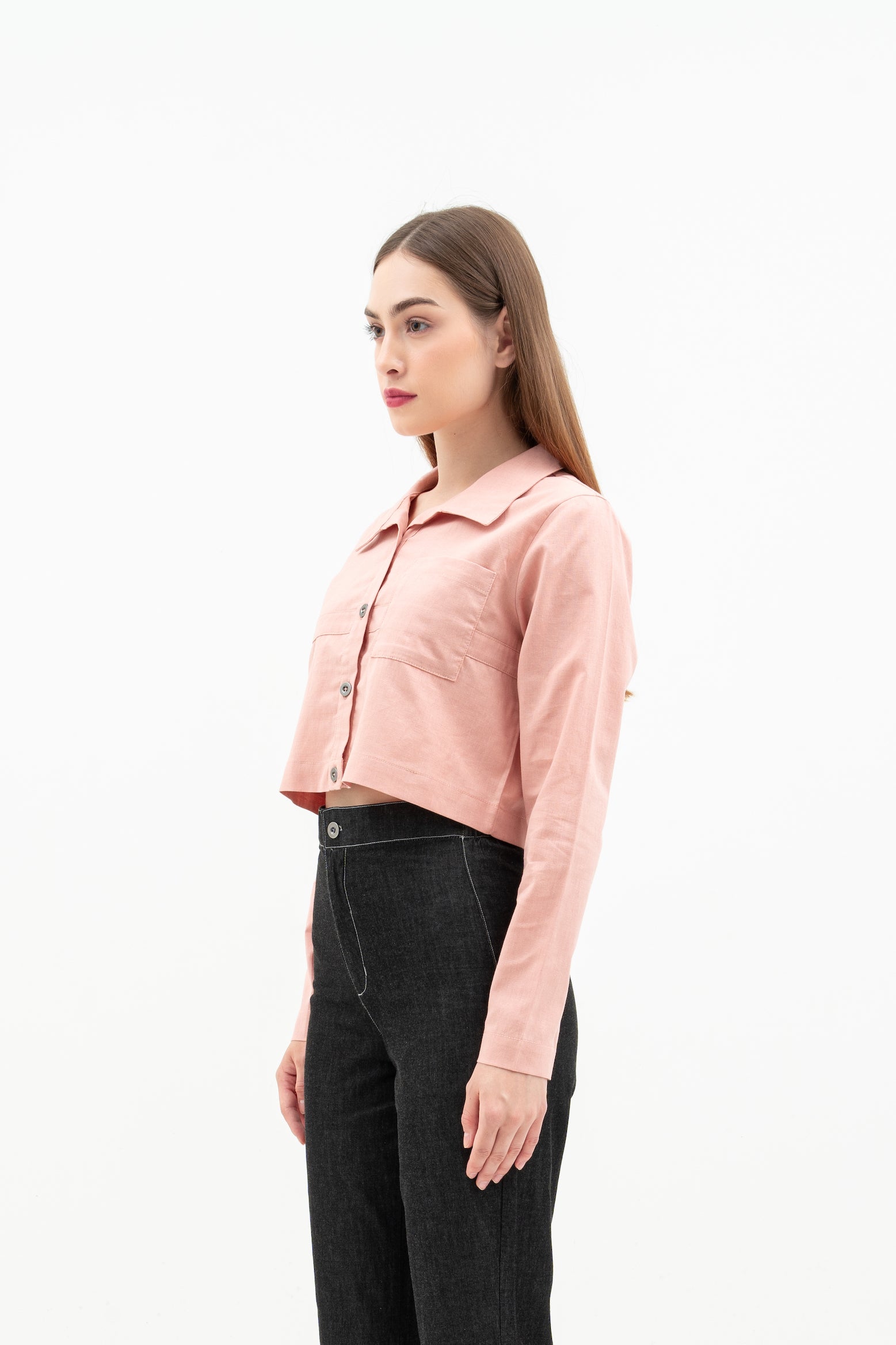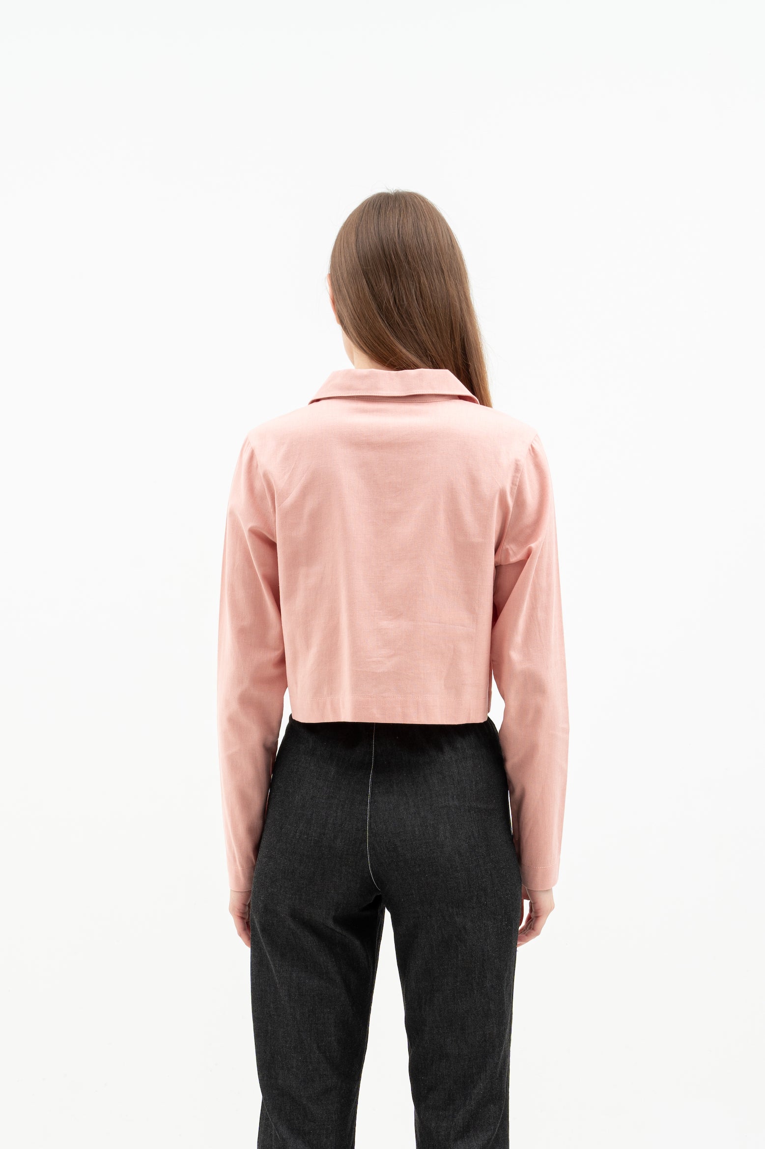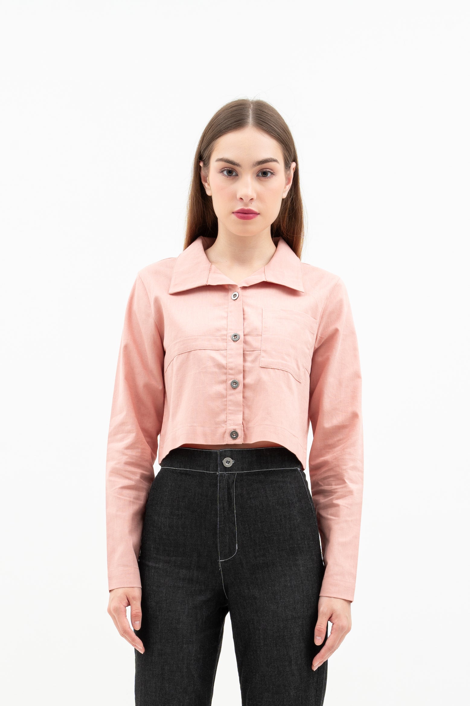Features: Cropped Length, Patch Pocket, Regular Fit, Long Sleeves, Rolled Collar