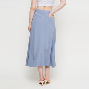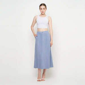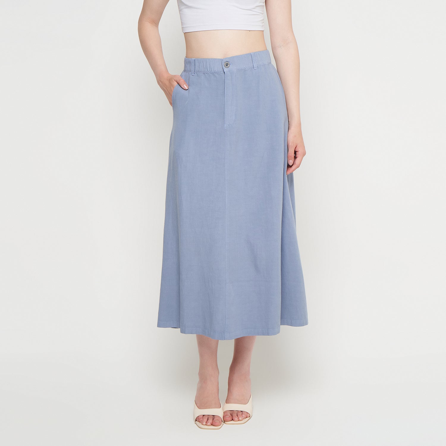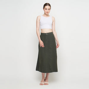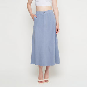 Nat Women's Skirt is a classic A-line skirt designed for everyday wear. It features a comfortable waistband with belt loops, handy side pockets at the front, and a neat welt pocket at the back. The skirt opens and closes easily with a button and zipper at the center front, blending style and practicality effortlessly.