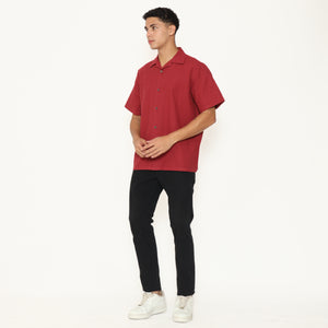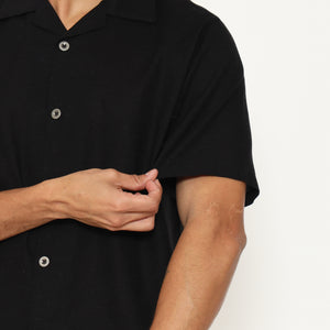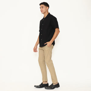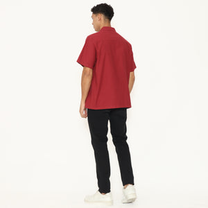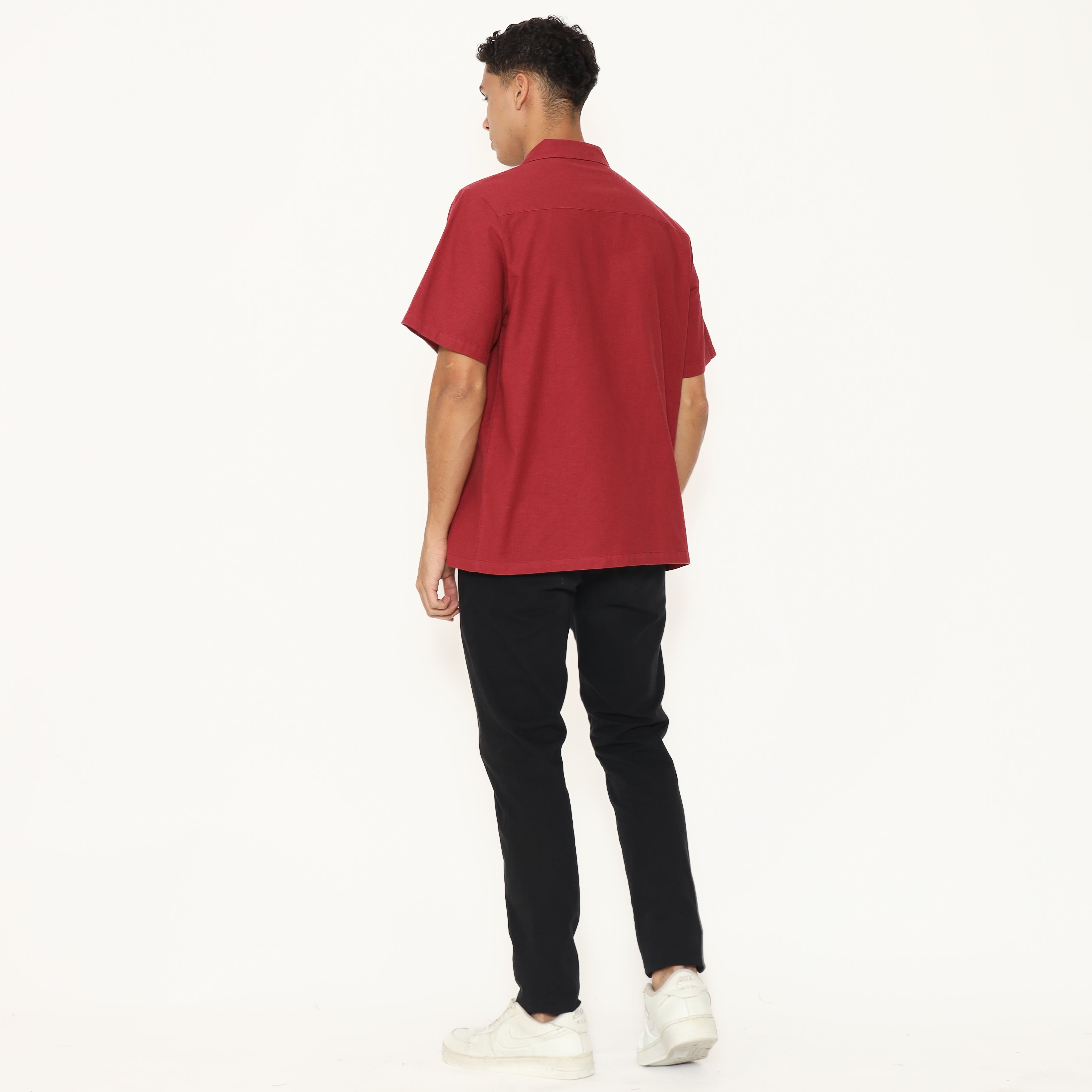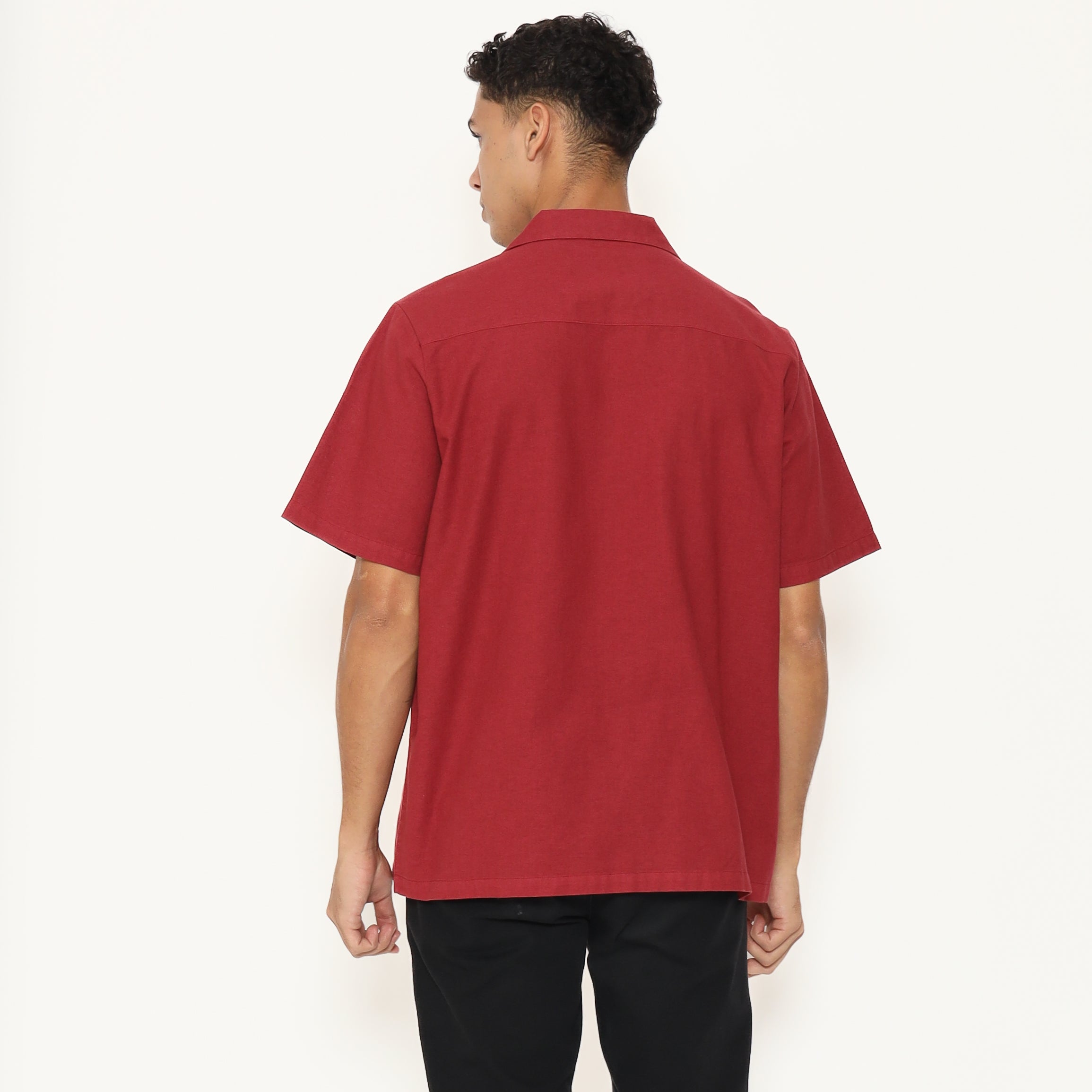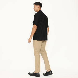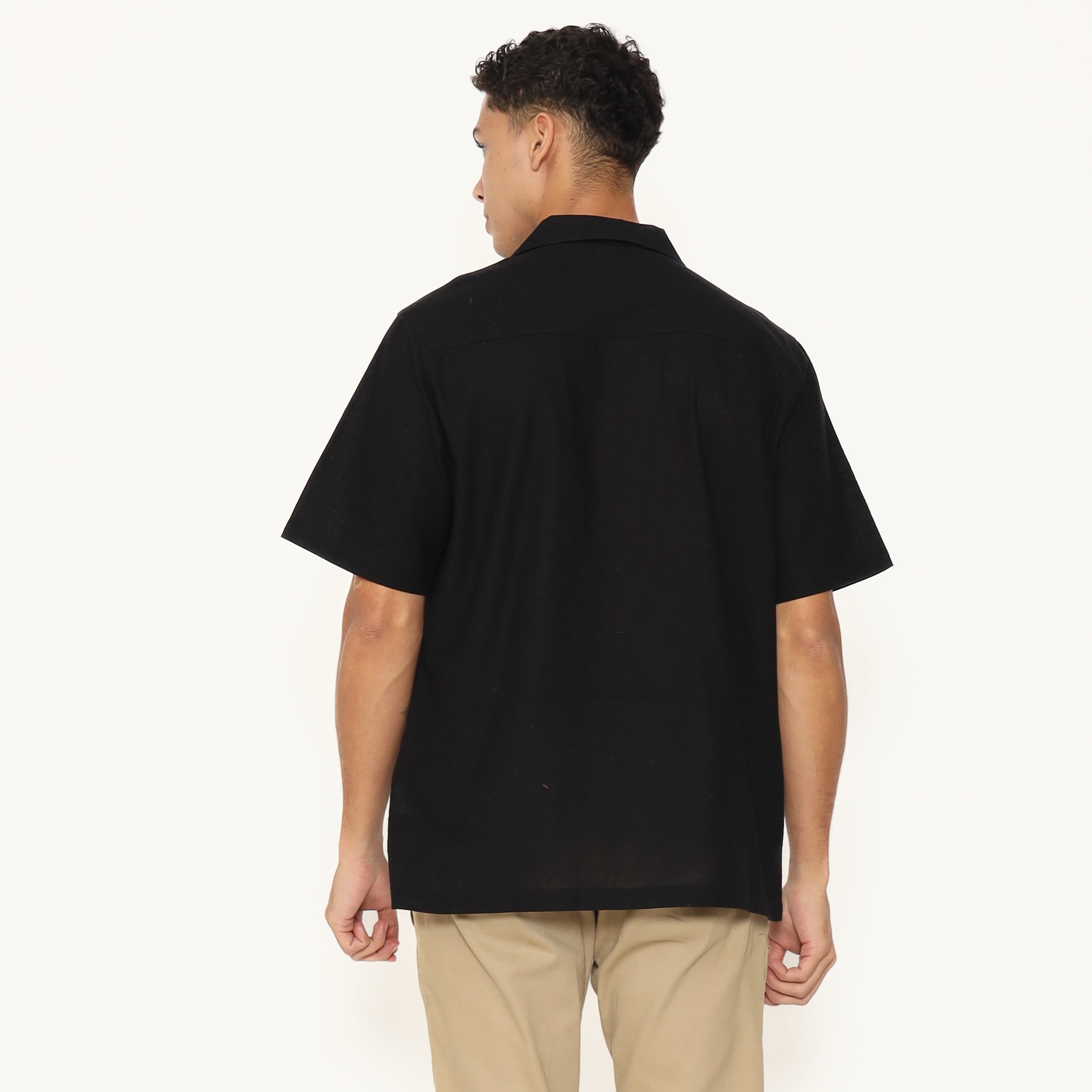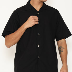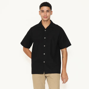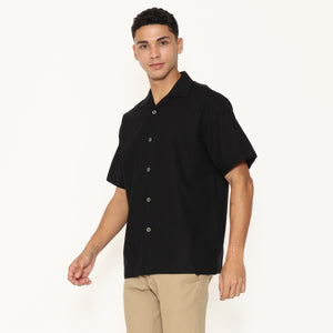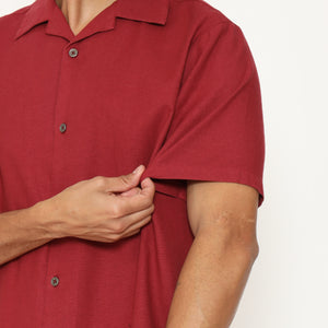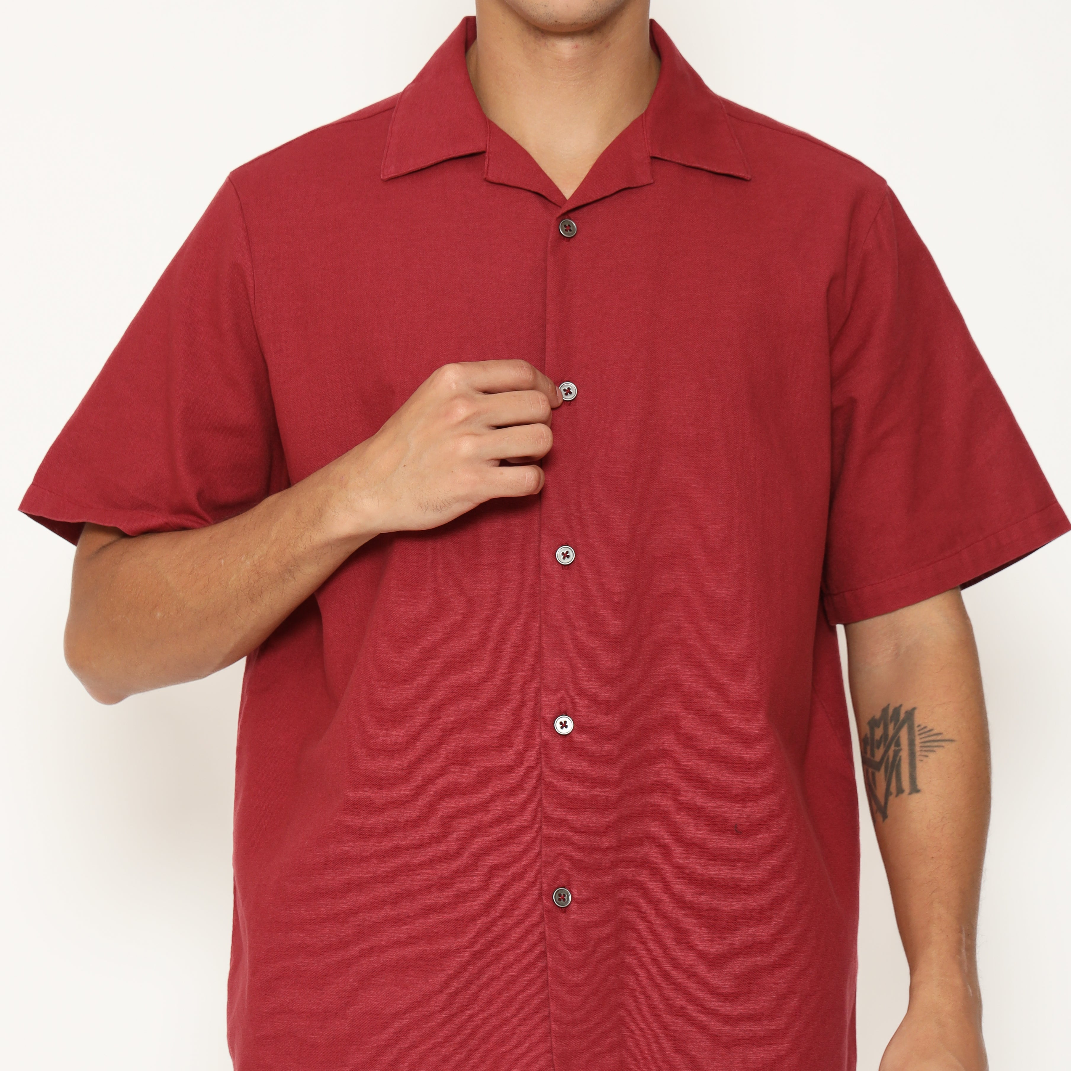 Noel Men's Top is a comfortable regular-fit shirt made from breathable cotton rami fabric, perfect for staying cool. It features a classic lapel and collar, short sleeves, and buttons down the center front for easy wear. The natural texture of the fabric adds a subtle touch of style to this everyday essential.