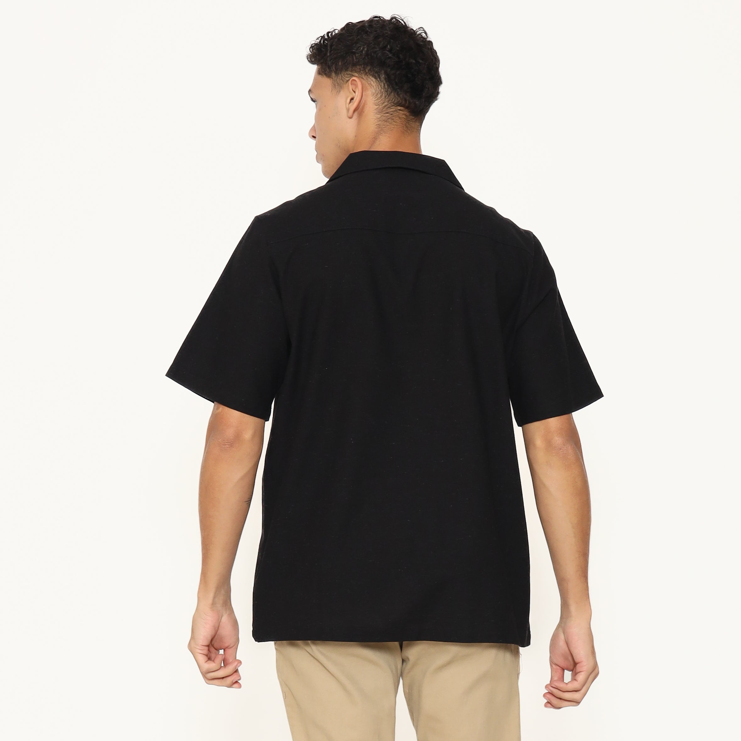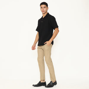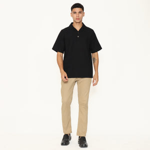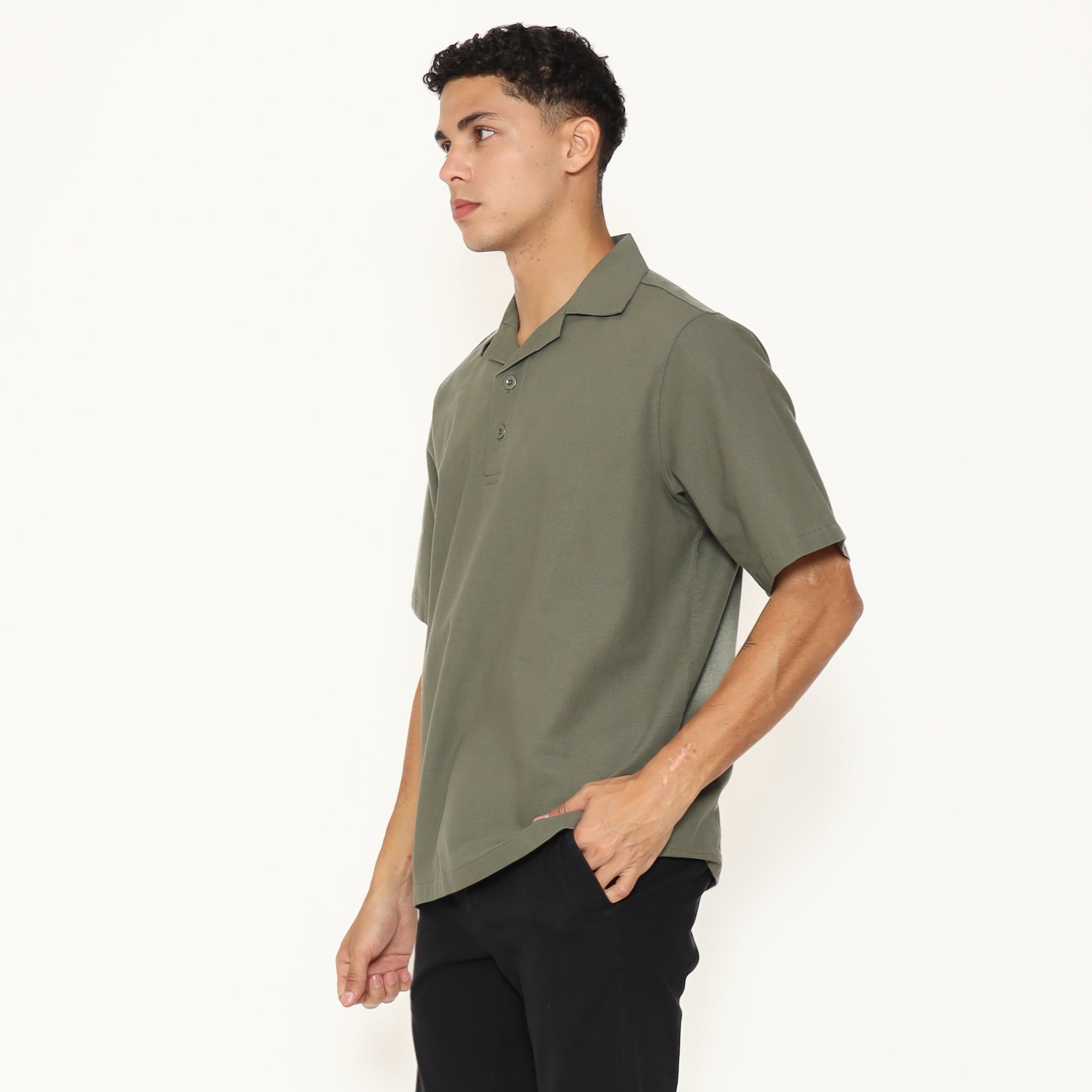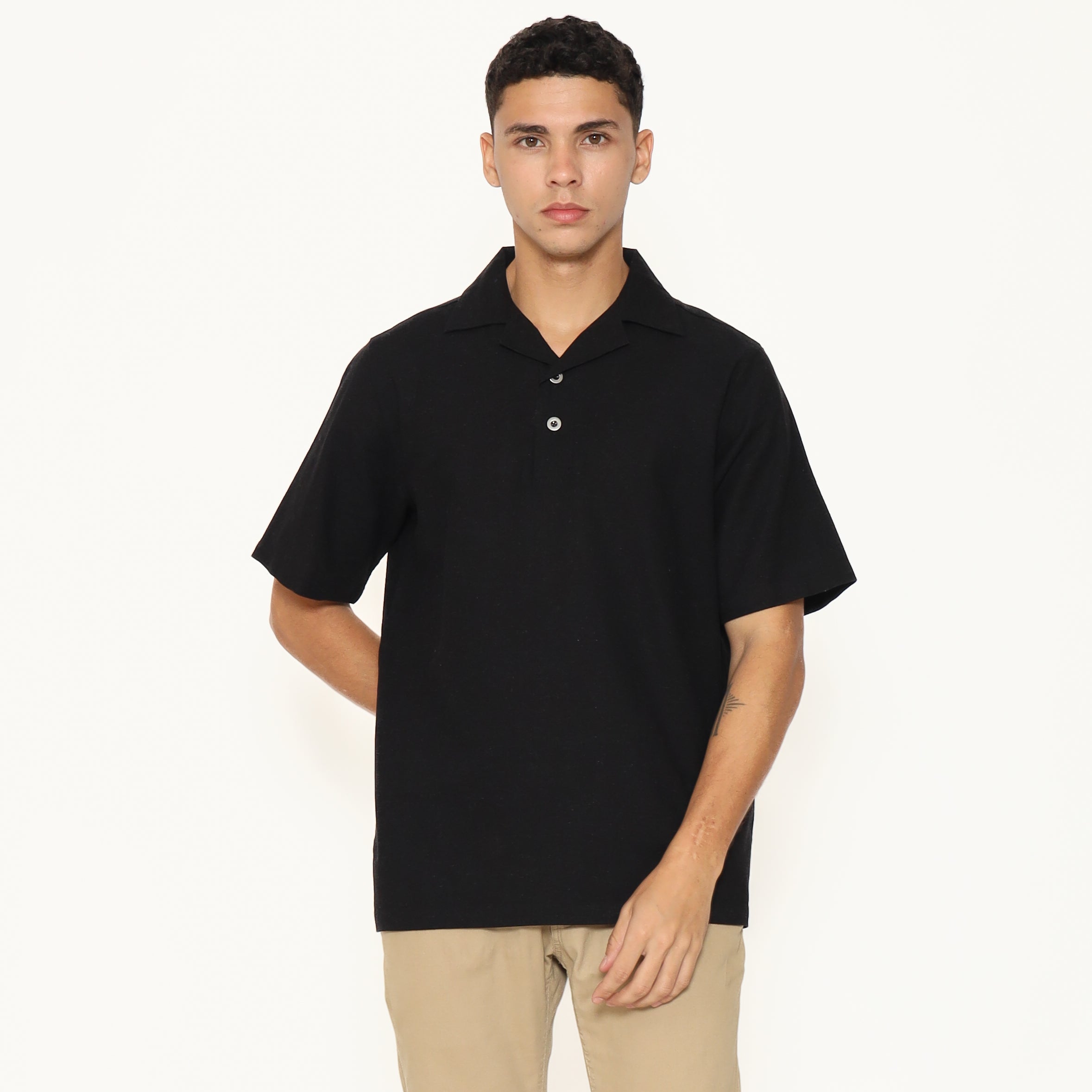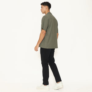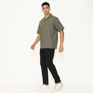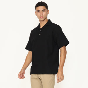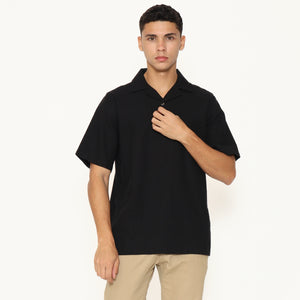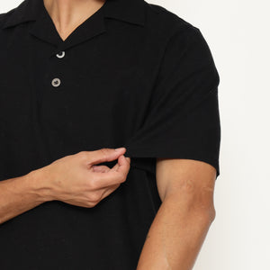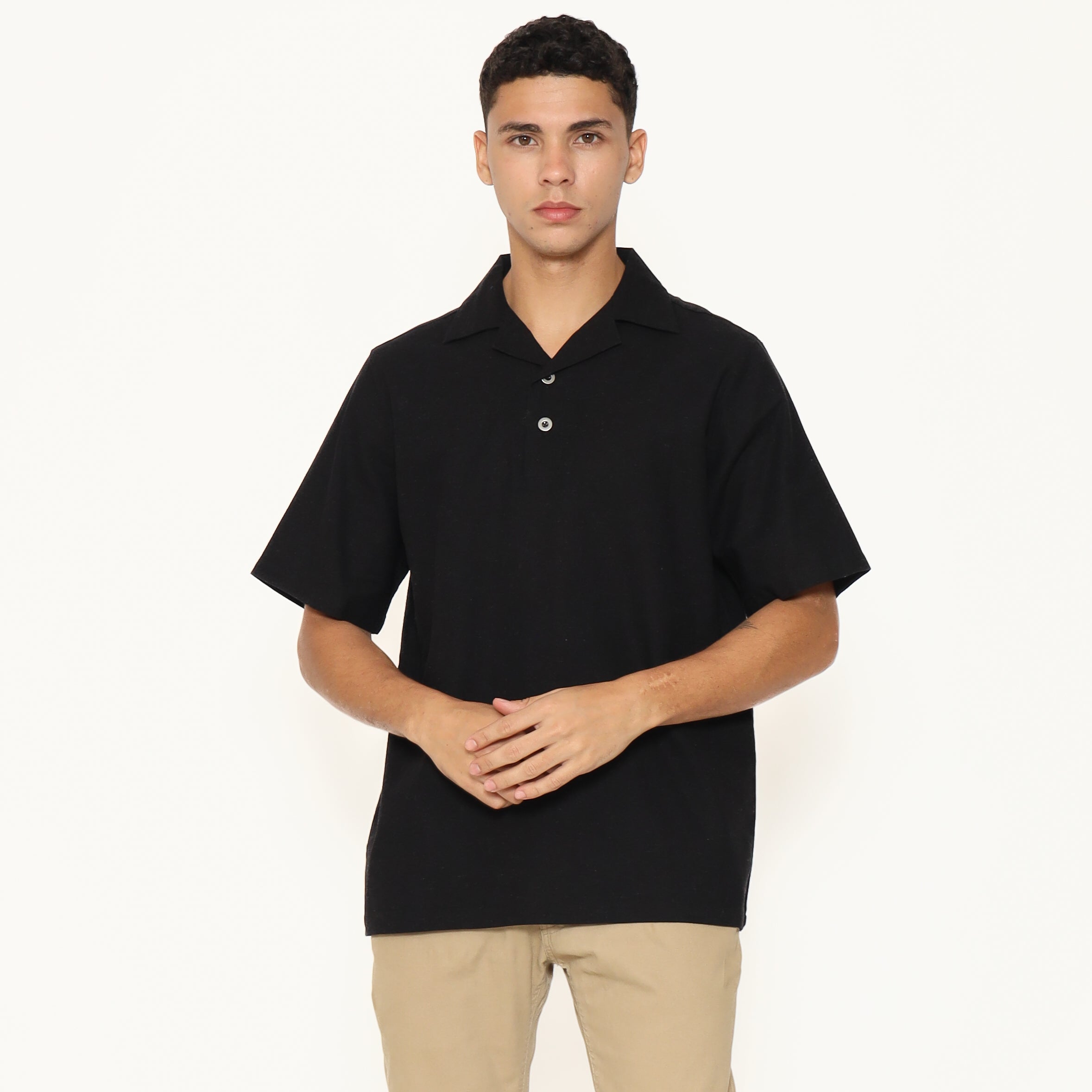 Oasis Men's Top is made from breathable cotton rami fabric, designed with a relaxed regular fit. It features a lapel and collar, short sleeves, and a button placket that stops halfway down the front for a clean, stylish look. Perfect for everyday casual wear.