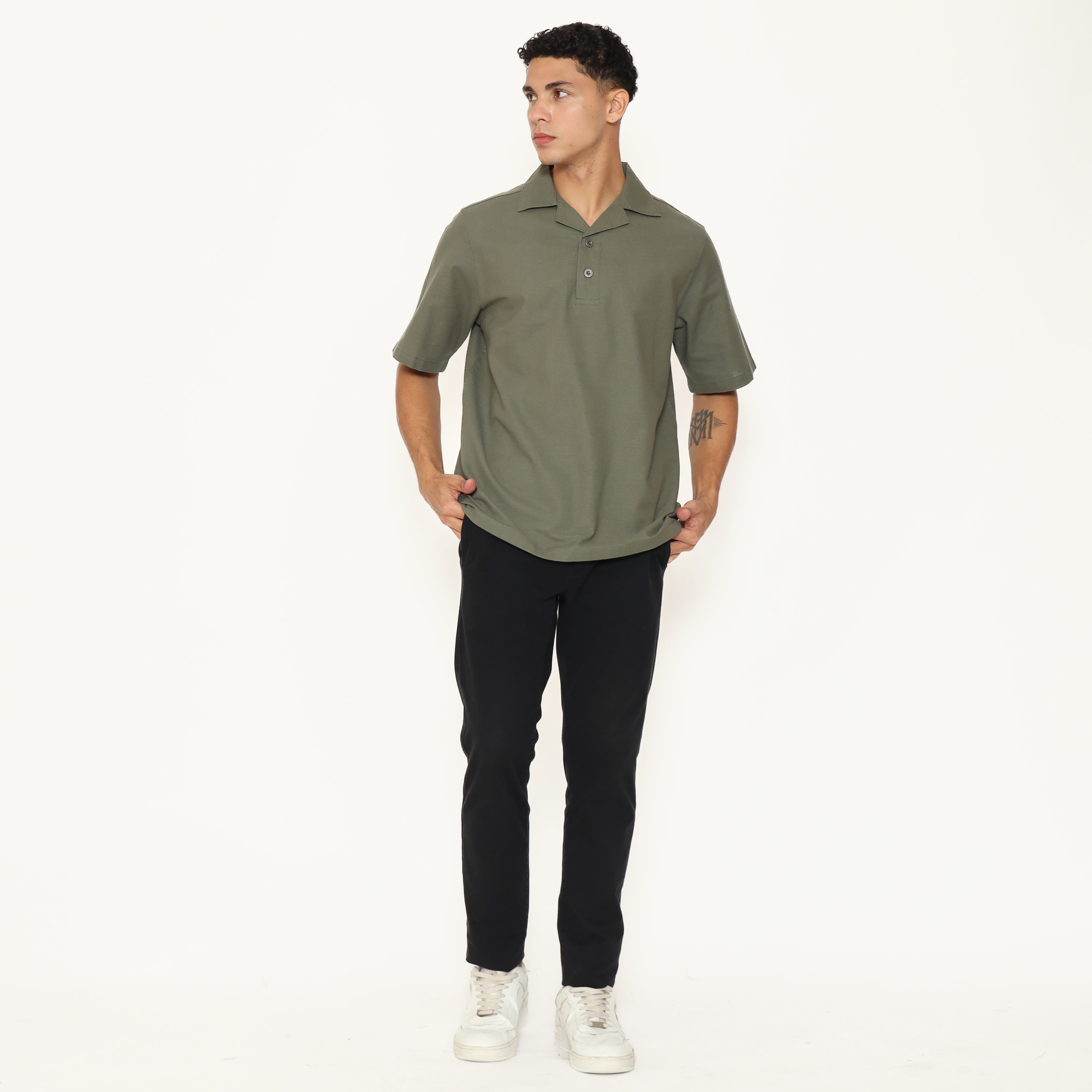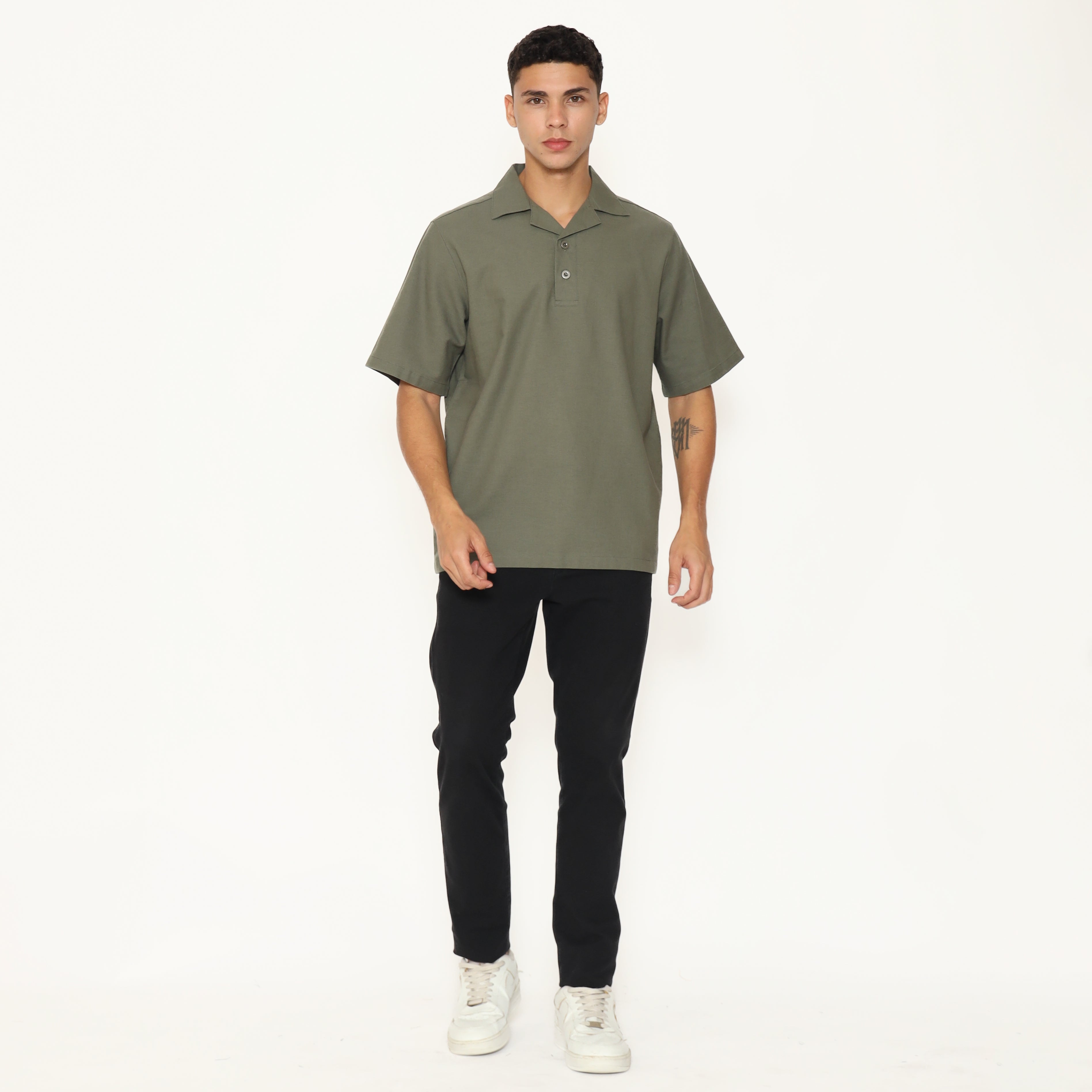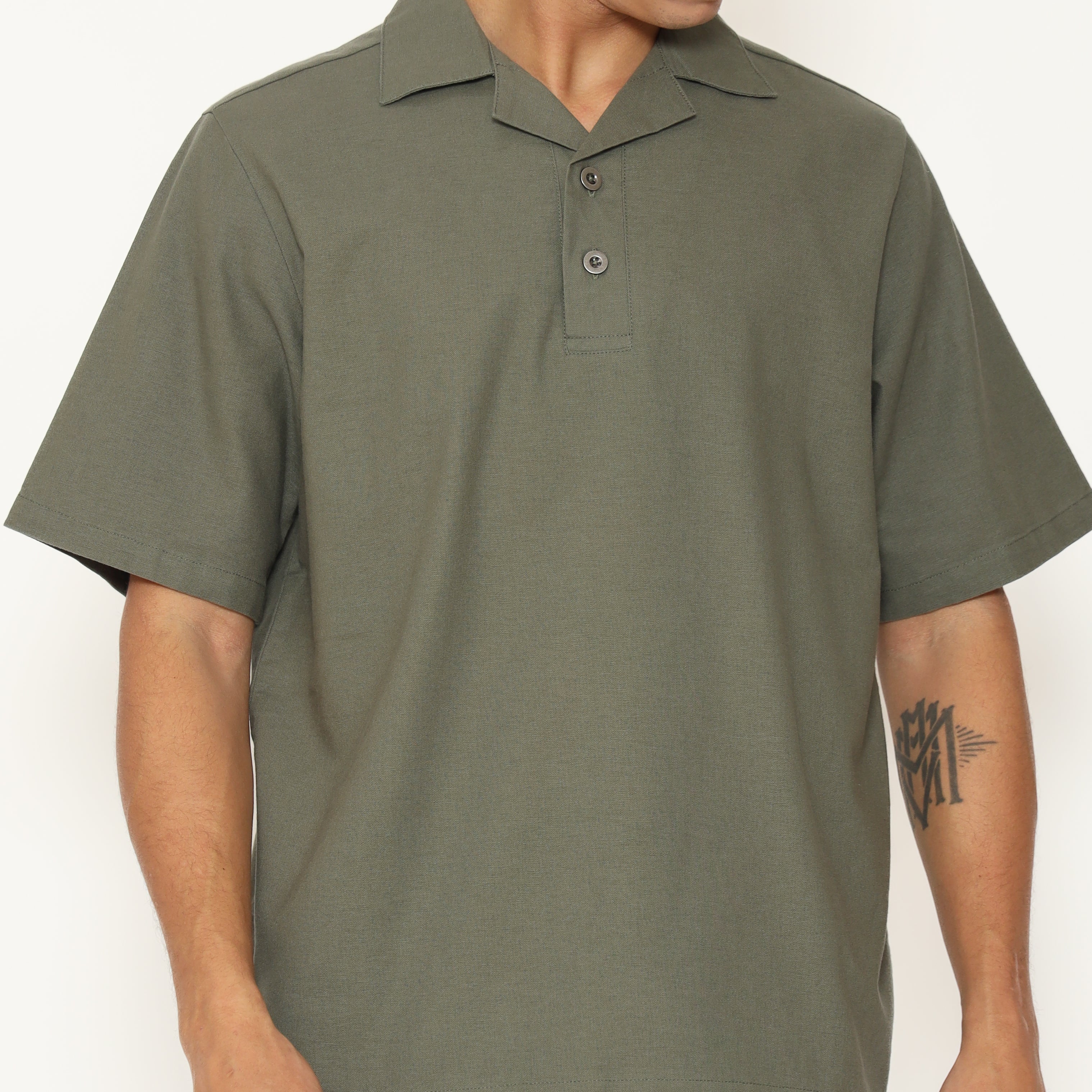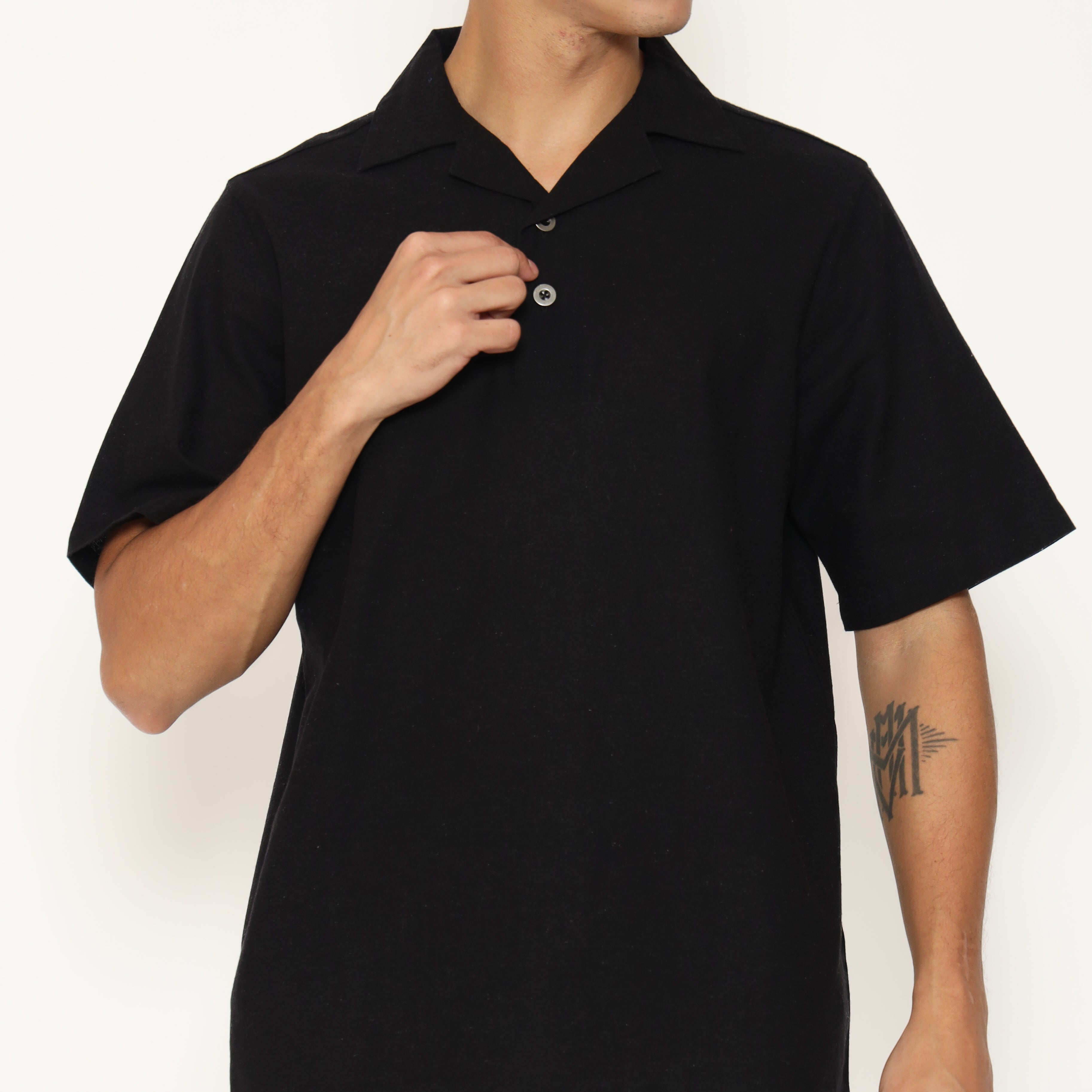 Oasis Men's Top is made from breathable cotton rami fabric, designed with a relaxed regular fit. It features a lapel and collar, short sleeves, and a button placket that stops halfway down the front for a clean, stylish look. Perfect for everyday casual wear.