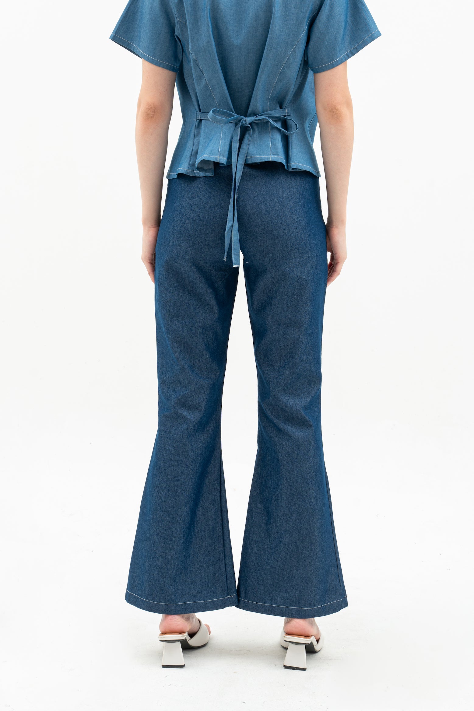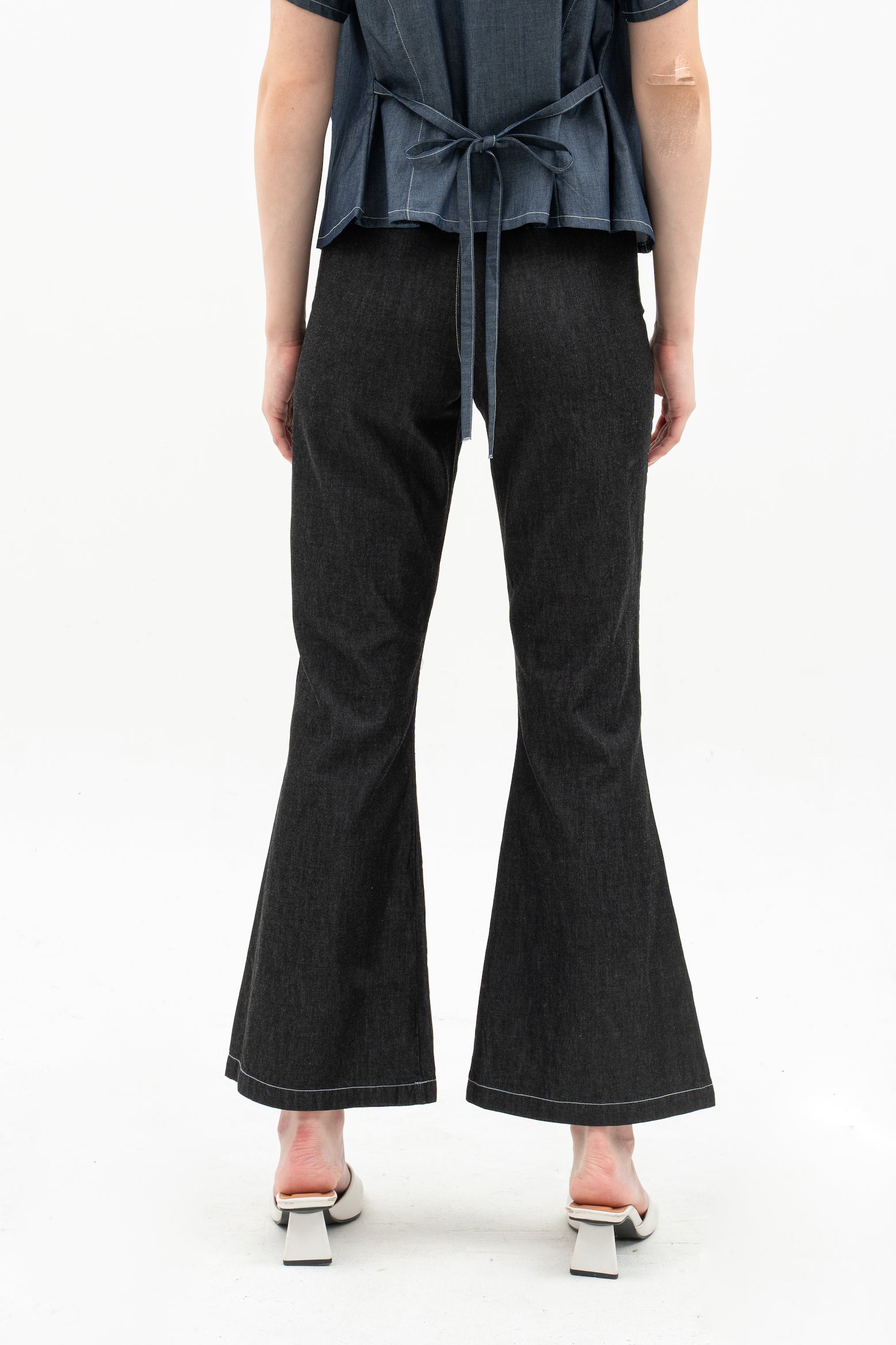 Features: Flare Hemline Pants, Waistband, Button and Zipper